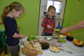 „Przedszkolaki przygotowują śniadanie” – takie warsztaty kulinarne dla dzieci to jedna z form służąca rozwijaniu ich samodzielności i sprawności w wykonywaniu czynności samoobsługowych. Dwa razy w miesiącu w naszym przedszkolu dzieci będą miały okazję spożywania śniadania w formie „szwedzkiego stołu”.