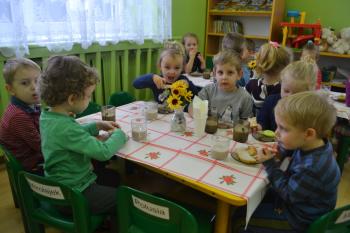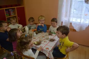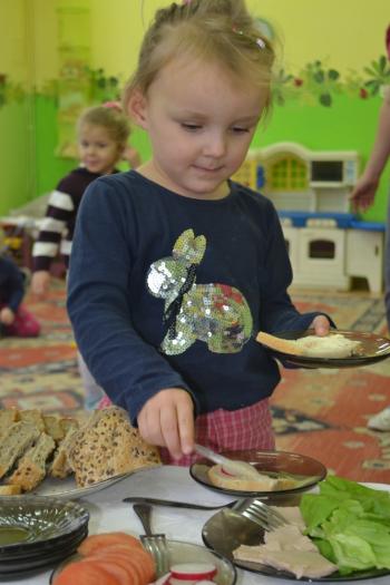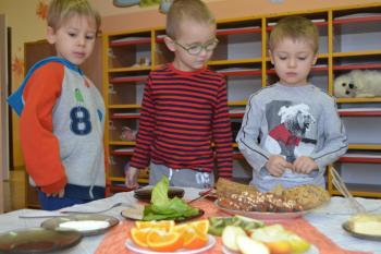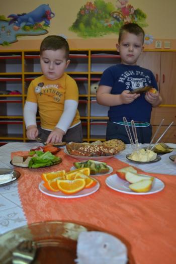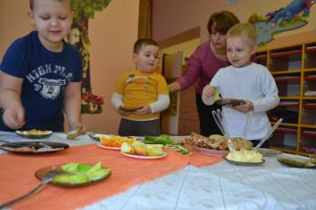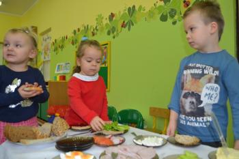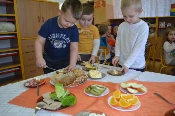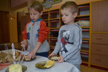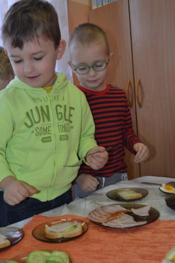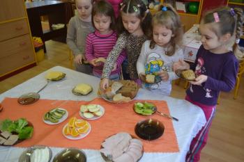 W piątek 30 stycznia 2015 r przedszkolaki we wszystkich grupach wiekowych samodzielnie komponowały swoje kanapki, próbowały smarować pieczywo masłem, dobierały dodatki według własnych upodobań. Jednocześnie dzieci poznawały zasady kulturalnego zachowania podczas takiego posiłku.
