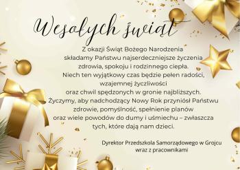 Z okazji Świąt Bożego Narodzenia składamy Państwu najserdeczniejsze życzenia zdrowia, spokoju i rodzinnego ciepła. Niech ten wyjątkowy czas będzie pełen radości, wzajemnej życzliwości oraz chwil spędzonych w gronie najbliższych. Życzymy, aby nadchodzący Nowy Rok przyniósł Państwu zdrowie, pomyślność, spełnienie planów oraz wiele powodów do dumy i uśmiechu – zwłaszcza tych, które dają nam dzieci.