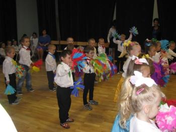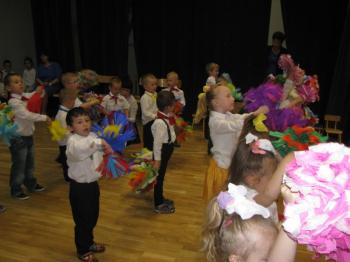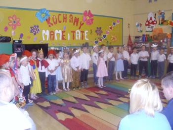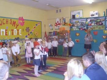 W dniu 26.05.2015 przedszkolaki ze wszystkich grup zaprosiły swoich Rodziców na uroczystość ,,Dnia Mamy i Taty”. Dzieci w ten sposób chciały podziękować za miłość ,troskę i trud włożony w ich wychowanie .Uroczystość rozpoczęła się od przywitania gości i złożenia życzeń przez panią Dyrektor. Dzieci pełne zaangażowania recytowały wiersze ,piosenki, oraz zaprezentowały umiejętności taneczne .Wielka trema trochę łez –ale występy się udały .Goszczenie Rodziców w przedszkolu to wspólne przeżywanie radości i okazywanie miłości. Na zakończenie występów dzieci odśpiewały ,,Sto Lat”, oraz wręczyły laurki z życzeniami. Rodzice byli zadowoleni i wzruszeni , ściskali swoje pociechy i dziękowali za upominki.