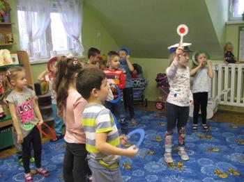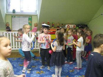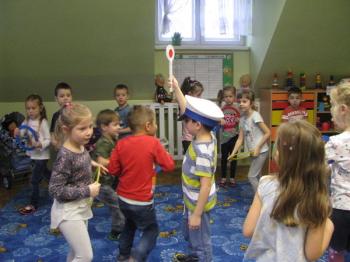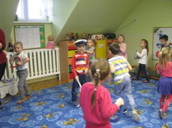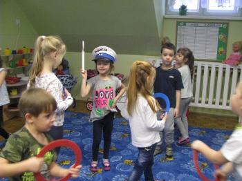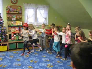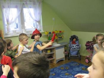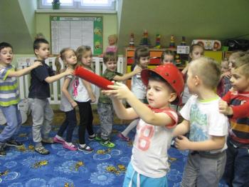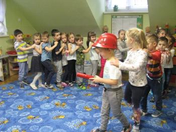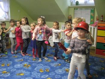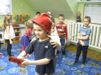 W zabawach ruchowych dzieci wcielały się w role policjanta albo strażaka. Każdy chciał przymierzyć odpowiednie nakrycie głowy.