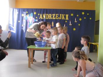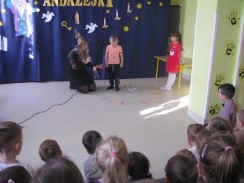Nad tym, aby wróżby nabrały swojej mocy czuwała andrzejkowa wróżka wypowiadając wspólnie z dziećmi zaklęcie ... "Hokus-pokus, czary-mary niech się spełnią andrzejkowe czary".