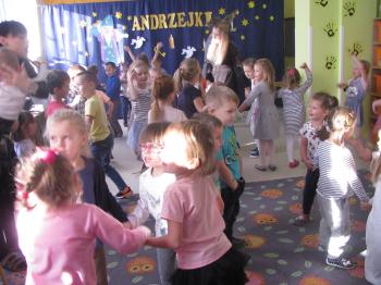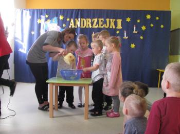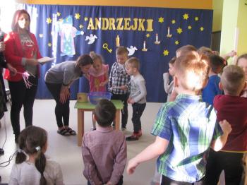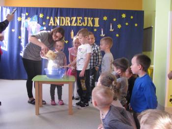 30 listopada w naszym przedszkolu odbyło się spotkanie, podczas którego dzieci poznały andrzejkowe tradycje. Były wróżby - "Kim będę w przyszłości", lanie wosku, "Kto będzie moim przyjacielem?", pantofelki, ale przede wszystkim była wspaniała, wspólna zabawa.