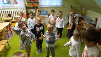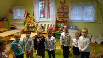 Dnia 10 listopada obchodziliśmy w naszym przedszkolu Święto Niepodległości. Z tej okazji wszystkie przedszkolaki przyszły odświętnie ubrane i uroczyście świętowaliśmy ten wyjątkowy dzień. Wszystkie dzieci dumnie przezentowały biało - czerwone kotyliony, oraz śpiewały hymn Polski - "Mazurek Dąbrowskiego". Dzieci podczas zajęć rozmawiały w tym szczególnym dniu o symbolach, kulturze i tradycjach naszego kraju. Przedszkolaki odwiedziły również pomnik poświęcony poległym mieszkańcom Poręby Wielkiej w czasie I i II wojny światowej. Dzięki udziałowi w tego typu uroczystościach przedszkolaki od najmłodszych lat uczą się patriotyzmu, kształtują pozytywne postawy i uczucia patriotyczne.