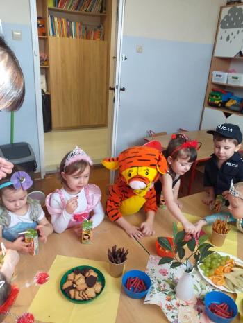 We wszystkich grupach panowała wspaniała i radosna atmosfera. Dzieci w doskonałych humorach prezentowały piękne kolorowe stroje i tańczyły przy ulubionych rytmach skocznej muzyki.