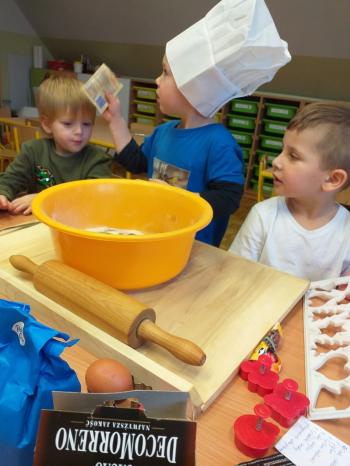 dzieci z ogromną radością pomagały przy produkcji tych świątecznych specjałów.