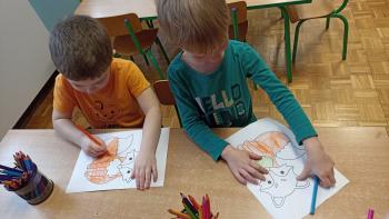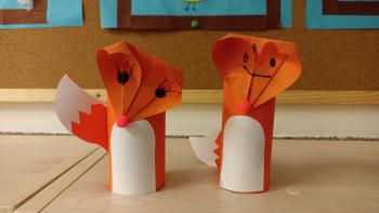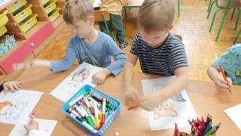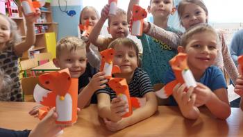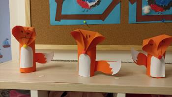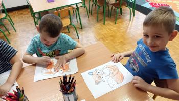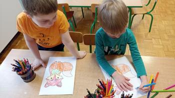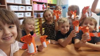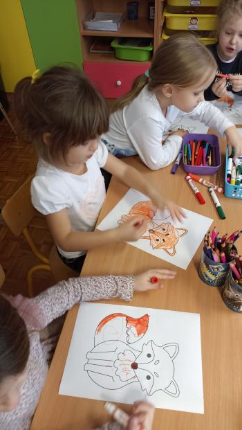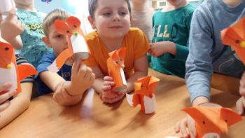 Po wysłuchaniu bajki dzieci wykonały piękne liski, ćwicząc przy tym zdolne rączki.