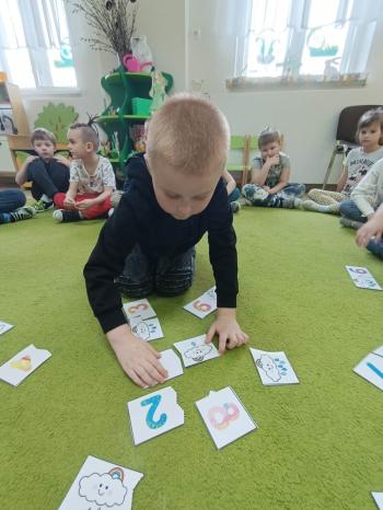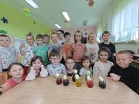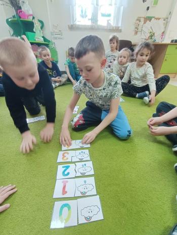 Na podsumowanie wszyscy wykonali tęczowe chmurki które ozdobiły naszą salę przedszkolną.