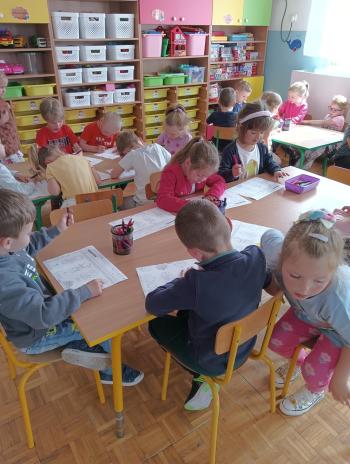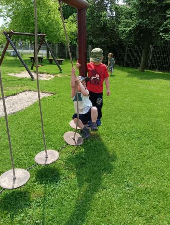 W miesiącu maju podczas zajęć dodatkowych zwrócono uwagę na konieczność przebywania na świeżym powietrzu o każdej porze roku. Wyrabiany umiejętności przeciwdziałania marznięciu, - rozcieranie rąk, tupanie
