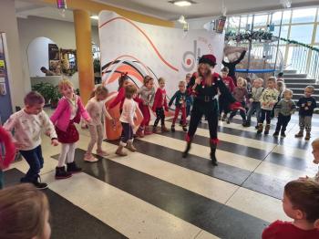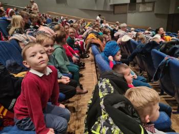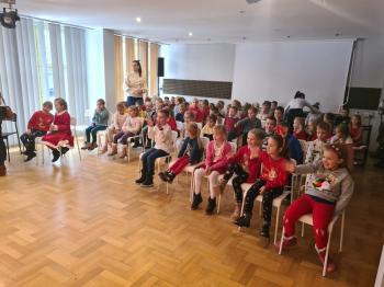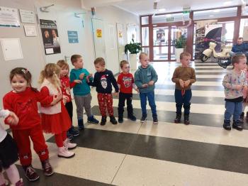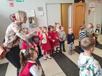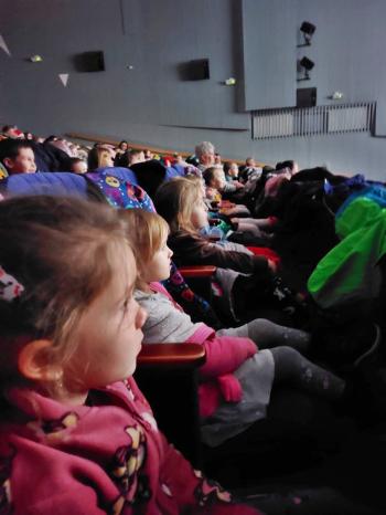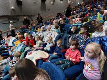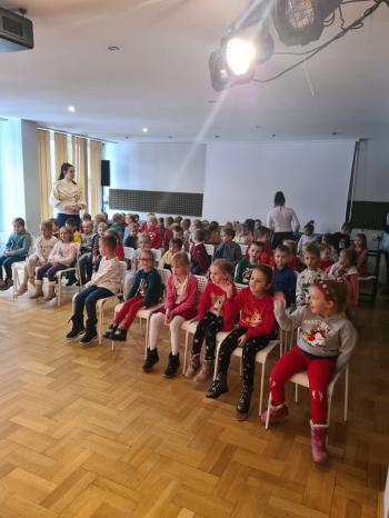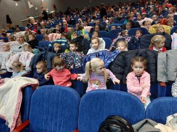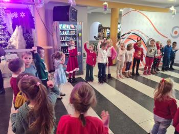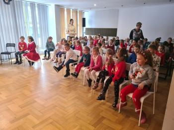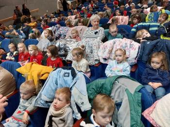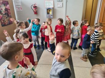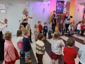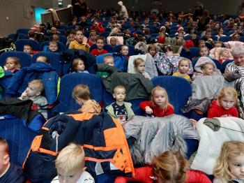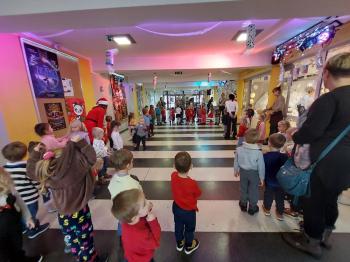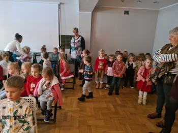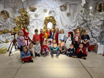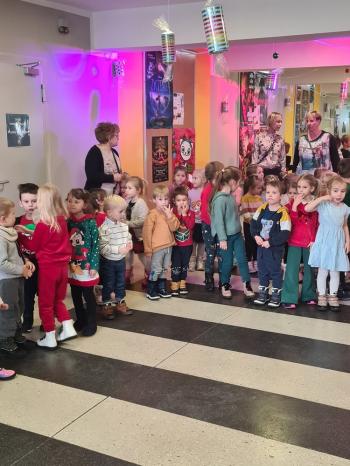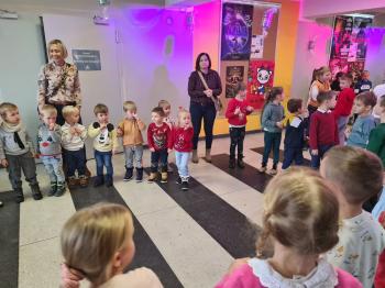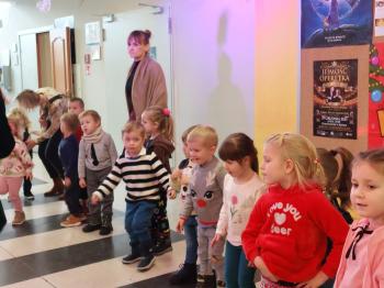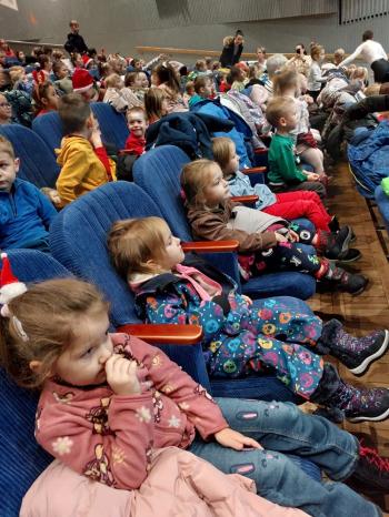 6 grudnia nasze przedszkolaki wybrały się naspotkanie ze Świętym Mikołajem do Domu Kultury w Kętach - Mikołaj czekał już tam na ich przybycie.