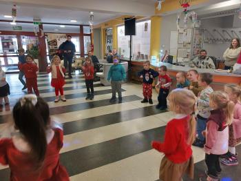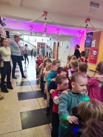 Przedszkolaki z radością przywitały Mikołaja. Święty Mikołaj jak co roku, obdarował wszystkich prezentami. Każde dziecko mogło zrobić sobie pamiątkowe zdjęcie.Spotkanie minęło w miłej atmosferze. Na twarzach dzieci malowała się radość i przejęcie ze spotkania z tak niezwykłą osobą.