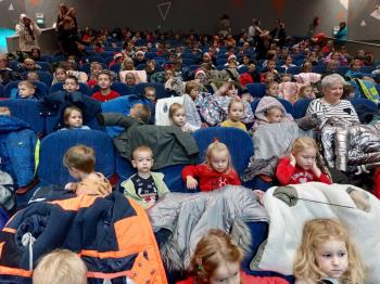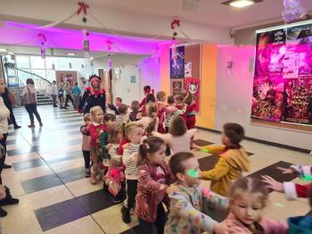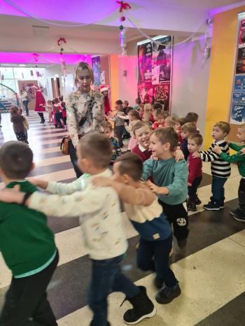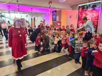 Przedszkolaki cieszyły się nie tylko z prezentów - cieszyła je także wspaniała zabawana z pomocnikami Świętego Mikołaja - wesołymi Elfami oraz udział w seansie filmowym, podczas, którego mogły obejrzeć film pt. "Życzenie"