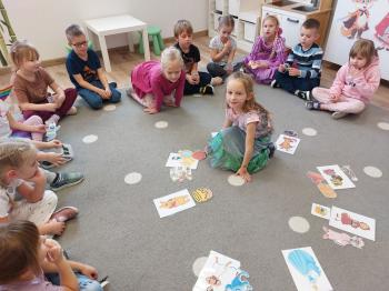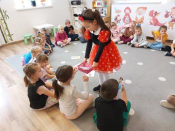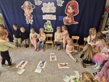 Był to dzień kolorowy i wesoły! Dzieci uczestniczyły w konkursach i quizach. Przedszkolaki segregowały bajkowe rekwizyty oraz układały bajkowe puzzle. Były muzyczne zgadywanki bajkowe oraz bajkowe zabawy ruchowe. Dzieci bardzo dobrze znają bajki i świetnie radziły sobie z zadaniami.