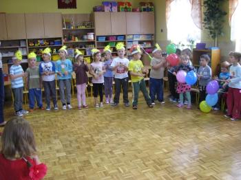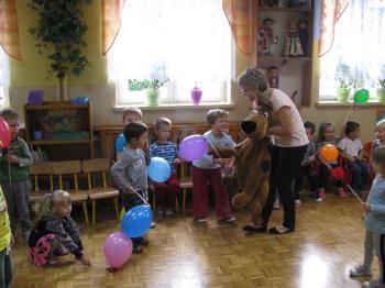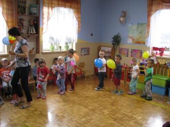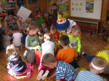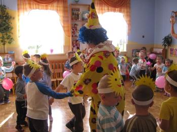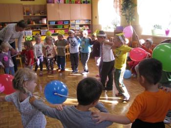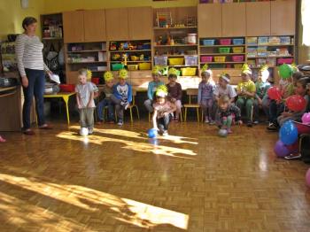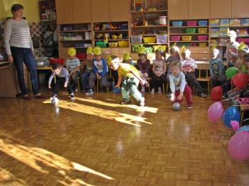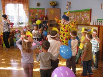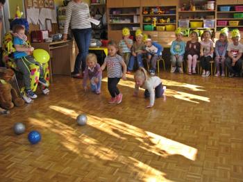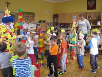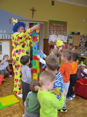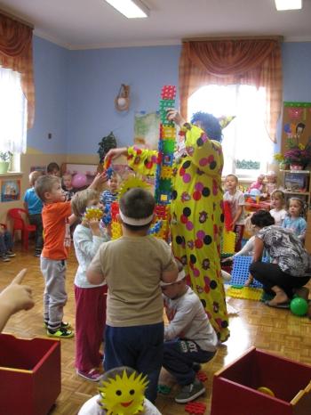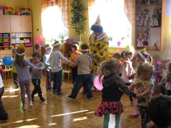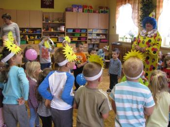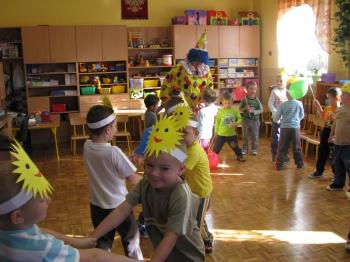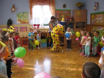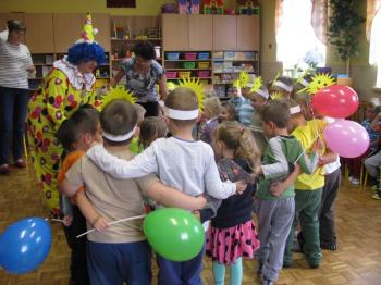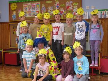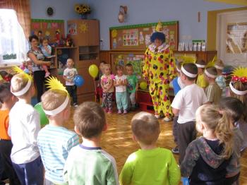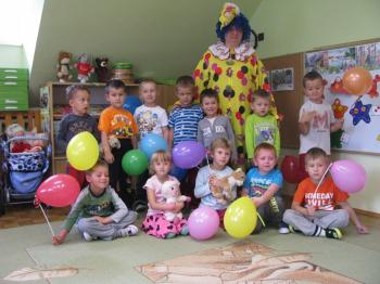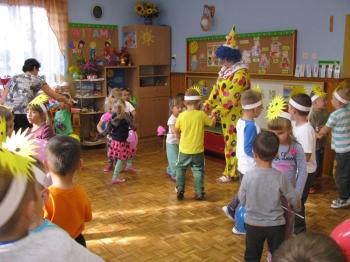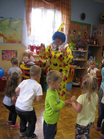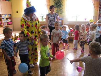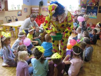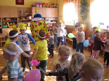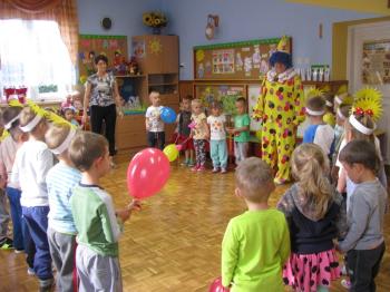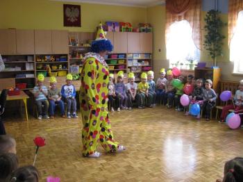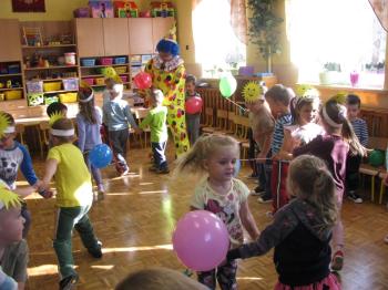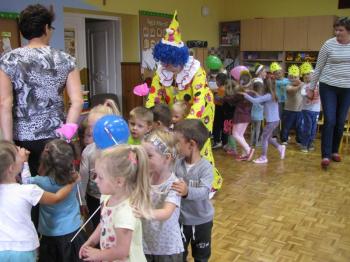 W tym dniu odwiedził nas wesoły klaun, który zachęcał do wspólnej zabawy wszystkie przedszkolaki.
