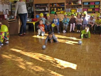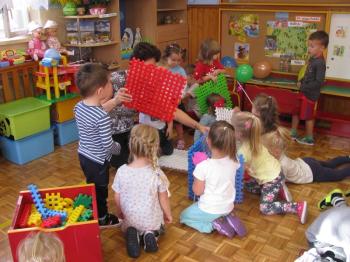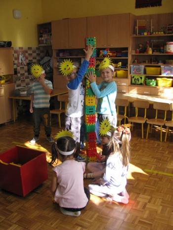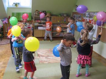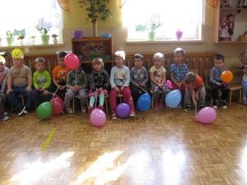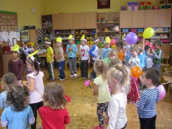 Bawiliśmy się przy dźwiękach ulubionych piosenek, rozwiązywaliśmy zagadki, rywalizowaliśmy w budowaniu wieży z klocków, a także w wyścigach z piłkami. Dzień upłynął nam w atmosferze wesołej zabawy i radosnego nastroju.