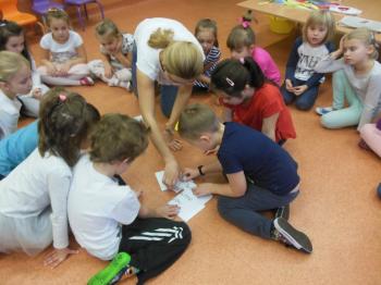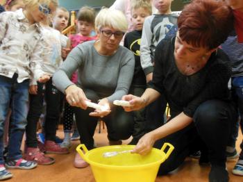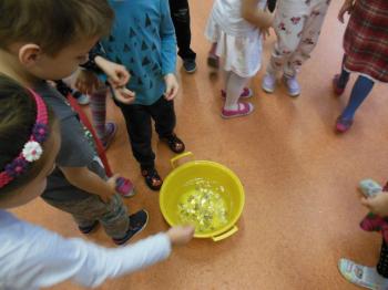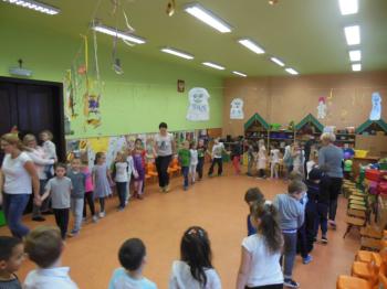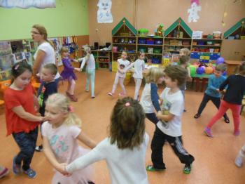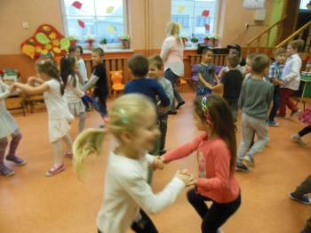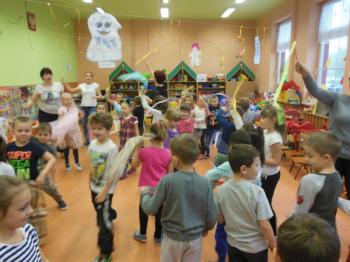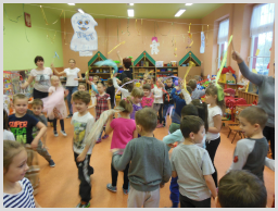 W dniu 30.11.2017 r. w naszym przedszkolu odbyły się „Zabawy Andrzejkowe”. W tym dniu odwiedzili nas goście – dzieci z Przedszkola Samorządowego we Włosienicy wraz z panią dyrektor Leokadią Kuklą. Dzieci z grupy Żabek wspólnie z kolegami i koleżankami z przedszkola we Włosnienicy czarowali i wróżyli, aby dowiedzieć się m.in. co ich czeka w przyszłości. Wszystkie dzieci wspólnie bawiły się przy wesołej, przedszkolnej muzyce tańcząc m. in. na gazetach, z balonami, czy kolorowymi chustami i różdżkami. Andrzejki zakończyły się słodkim poczęstunkiem, a kończąc wspólną zabawę wszyscy otrzymali pamiątkowe medale.