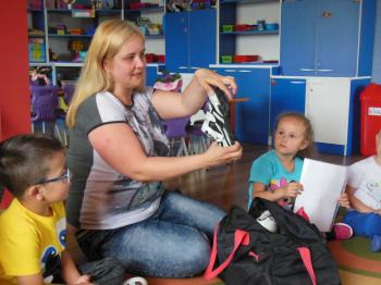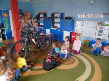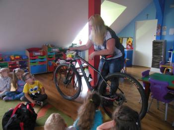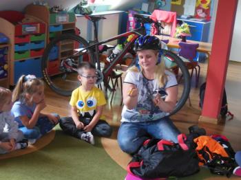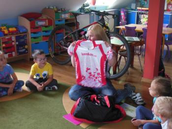 W majową środę w ramach Klubiku Rodzica oddział Kaczuszek odwiedziła mama Nataszki. Pani Iwona przedstawiła nam swoją pasję - kolarstwo. Wprowadziła nawet do sali swój rower! Mama Nataszy opowiedziała nam o swoich doświadczeniach związanych z jazdą na rowerze, pokazała nam strój kolarski oraz zdobyte medale i puchary. Zajęcia były bardzo ciekawe. Dowiedzieliśmy się wiele interesujących rzeczy. Na zakończenie otrzymaliśmy odblaski, dzięki którym będziemy bezpieczni podczas przechodzenia przez jezdnię. Pani Iwonko, dziękujemy! |