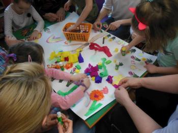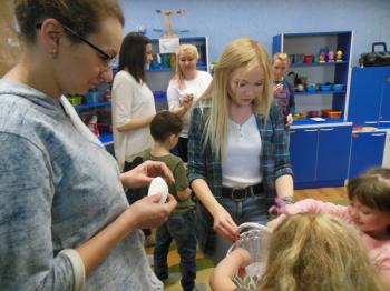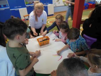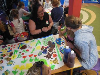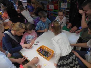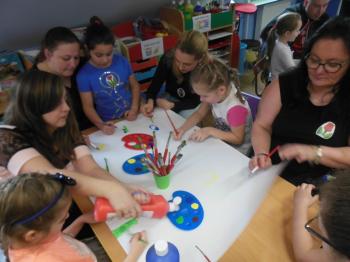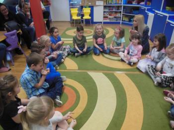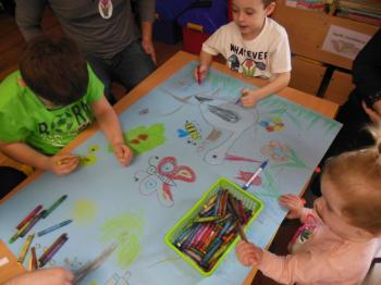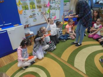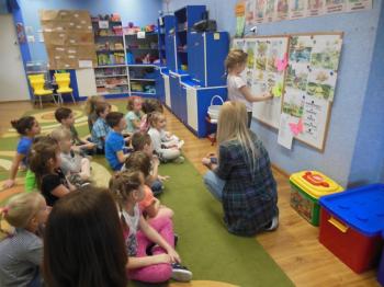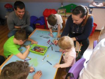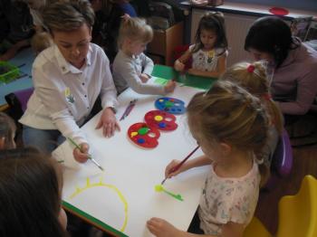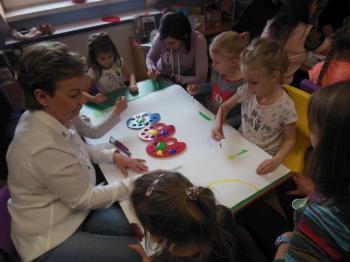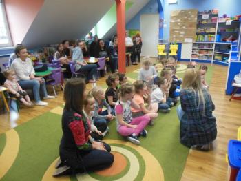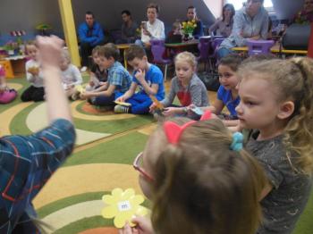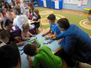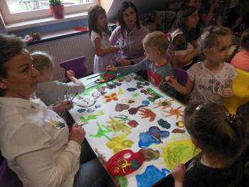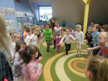18 marca odbyły się zajęcia pokazowe dla rodziców w oddziale ,,Żabek”. Starszaki zaprezentowały rodzicom swoje umiejętności. Dzieci rozmawiały na temat wiersza „Wiosna”, rozpoznawały pory roku i sprawnie dopasowały obrazki do każdej z nich, odczytywały wyrazy, wymyślały wyrazy na wskazaną literę oraz dzieliły wyrazy na sylaby. Dzieci znakomicie poradziły sobie z działaniami matematycznymi - na dodawanie i odejmowanie w zakresie 10. Starszaki wykazały się umiejętnościami muzyczno - tanecznymi prezentując piosenki „Samogłoski”, „Mały samochodzik”, „Nazwy miesięcy”. Na koniec zajęć przedszkolaki zaprosiły rodziców do wykonania pracy plastycznej pt. Wiosna”. To był bardzo interesujący dzień!!!