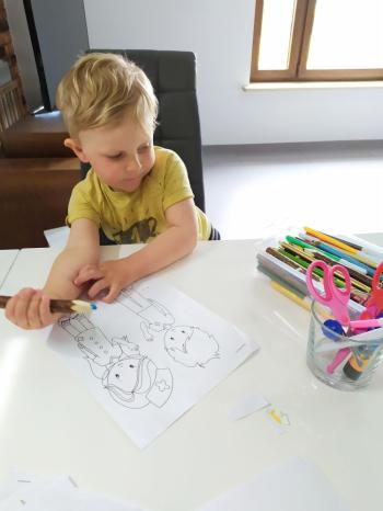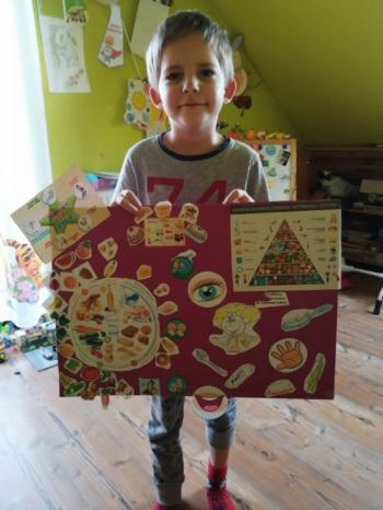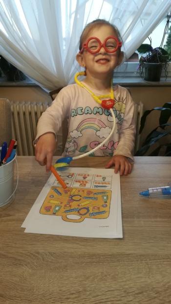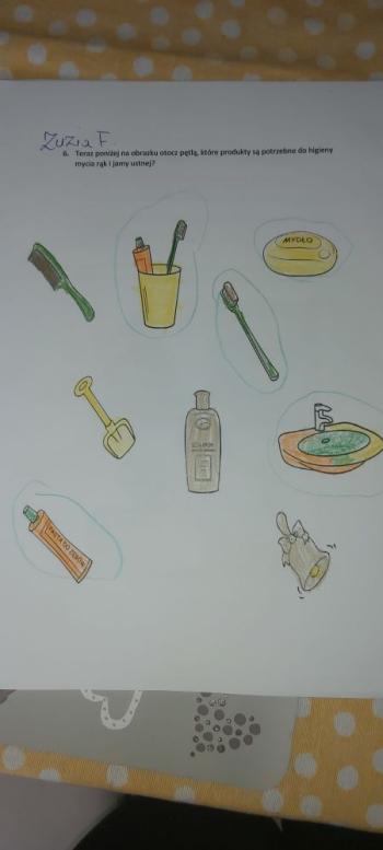 Po świętach Wielkanocnych od 14 – 17 kwietnia przedszkolaki poznały temat: „ Dbamy o czystość i higienę”. Słoneczka uczyły się przygotować zdrowe kanapki i jak zrobić zdrowe zakupy, ponadto utrwaliły zasady mycia rączek oraz jak trzeba dbać o higienę ,gimnastykowały się wspólnie z rodzicami, wykonywały pracę plastyczną z bakteriami oraz poznały zawód lekarza, pielęgniarki , dentysty. Natomiast Kaczuszki oglądały bajeczkę „ O wirusku”, wysłuchały wierszyka pt. „Dla każdego coś zdrowego”, przypomniały sobie piramidę żywieniową, rozwiązywały zagadki matematyczne dotyczące zdrowej i niezdrowej żywności, powtórzyły piosenkę z numerami alarmowymi oraz tańczyły przy piosence „ Mydło lubi zabawę”, układały puzzle, ćwiczyły w domu lub na świeżym powietrzu oraz wykonały wyklejankę owocową i pracę plastyczną tworząc apteczkę, dowiedziały się na czym polega zawód lekarza, pielęgniarki i ratownika. Natomiast Żabki zapoznały się z książeczką pt. „ Cześć jestem kuzyn grypy i przeziębienia”, dzięki której utrwaliły zasady zagrożenia koronowirusem. Poznały wiersze Jana Brzechwy pt. „ Brudas”, Juliana Tuwima pt. „ Recepta na zdrowie” oraz opowiadanie pt. „ Kłopoty Leśnych Przyjaciół – leczymy zajączka”, rozwiązywały krzyżówkę, poznały literkę G, g śpiewały piosenki: „ Przegoń wirusa”, „Higiena”, oglądały filmik 5 zasad zdrowego i prawidłowego odżywiania oraz tworzyły plakat „ Dbamy o czystość i zdrowie”, ćwiczyły podczas zabaw taneczno-ruchowych , rozwiązywały zadania matematyczne oraz poznały zawody medyczne jak: lekarz, pielęgniarka, ratownik medyczny, dentysta. To był tydzień wielu wrażeń!!! |