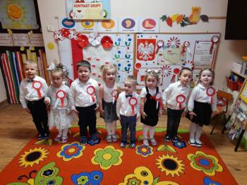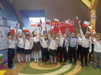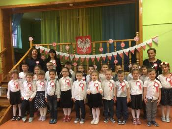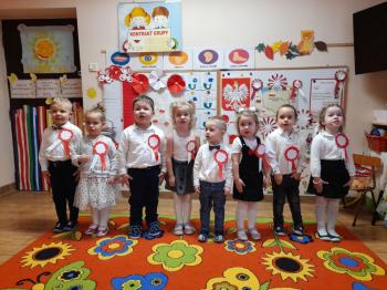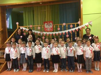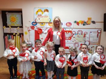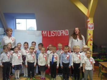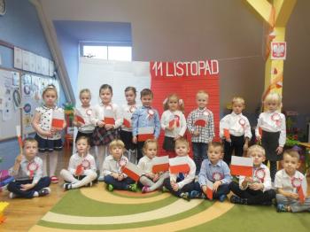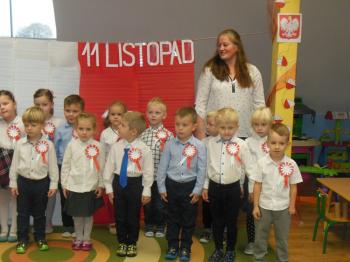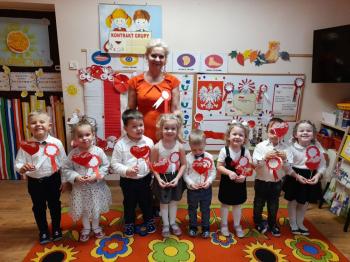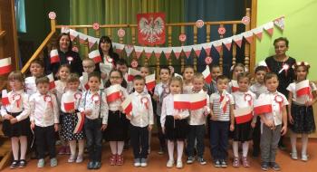 Nasze przedszkole uczestniczyło w kolejnej edycji akcji „Szkoła do hymnu". Przedszkolacy udekorowali swoje sale pracami plastycznymi i czerwonymi serduszkami. We wtorek 10 listopada o godzinie 11.11, na dzień przed Świętem Niepodległości, dzieci z trzech oddziałów odśpiewały radośnie Mazurek Dąbrowskiego. Na wcześniejszych zajęciach dzieci poznawały symbole narodowe, uczyły się prawidłowej postawy podczas śpiewania hymnu narodowego i szanowania flagi i godła polskiego. Dzieci wykonywały biało-czerwone chorągiewki, śpiewały piosenki patriotyczne i recytowały wiersz W. Bełzy pt.: „Katechizm polskiego dziecka”. |
