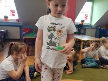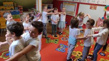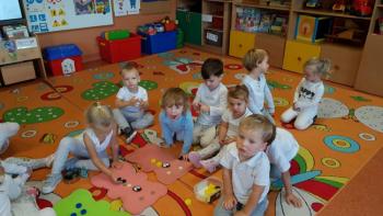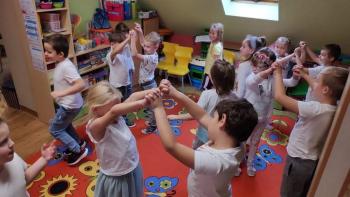 W dniu 4 listopada odbył się w naszym przedszkolu Dzień Aktywności pt. ,,Dzień ciszy – śpiące niedźwiedzie”. Słoneczka bawiły się w zabawy słowne w formie burzy mózgów – Kto to jest miś ? Kto to jest niedźwiedź ? oraz ,,Prawda – Fałsz”. Następnie maluszki uczestniczyły w zabawach ze śpiewem - ,, Stary niedźwiedź”, ,,Dwa malutkie misie” i ,,Miś w przedszkolu” oraz z wykorzystaniem chusty animacyjnej –,, Misie w domku” oraz Niedźwiedź i dzieci”. Na zakończenie zajęć wykonały gąbkowe misie przy melodii z pozytywki. Natomiast Kaczuszki bawiły się w zabawy, które wymagają precyzji i skupienia a mianowicie podawanie wybranej osobie naczynia z jajkiem oraz dzwoneczka, który nie wydaje dźwięku. Następnie chodzenie po wyznaczonej linii jak niedźwiedź oraz trzymając w ręce łyżkę ze szklaną kulą, aby nie spadła. Natomiast starszaki podczas dnia ciszy oglądały teatrzyk cieni, rozmawiały na temat zwyczaju zimowego snu zwierząt, ponadto odgadywały zagadki i klasyfikowały zwierzęta oraz ćwiczyły dodawanie i odejmowanie. Bawiły się w zabawę ,,Wiewiórki z dziupli”. A na koniec zajęć wykonały niedźwiedzia tekturowego owiniętego włóczką. To był naprawdę dzień wielu wrażeń!!!