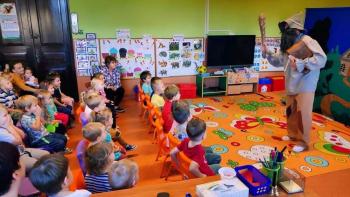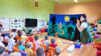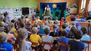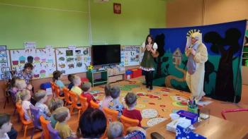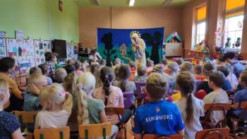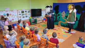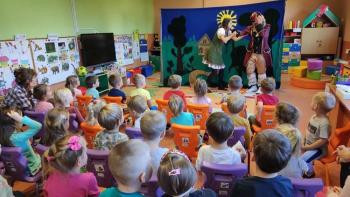 W piątek 5 listopada po raz kolejny raz zawitał do nas teatrzyk „Skrzat” z Krakowa. Przedszkolaki miały przyjemność obejrzeć spektakl teatralny. pt.: „STRACH MA WIELKIE OCZY”. Dzieci aktywnie uczestniczyły w przedstawieniu: śpiewały, odpowiadały na liczne pytania .Przedstawiona historia, wbrew tytułowi, była wesoła, a zarazem pouczająca. Dzięki ciekawej grze aktorskiej, muzyce oraz pouczającym scenkom, nasze przedszkolaki poznały znaczenie zwrotu „strach ma wielkie oczy”. Teraz dzieci już dobrze wiedzą, że często obiekt naszego lęku i strachu w rzeczywistości wcale nie jest taki groźny, na jaki wygląda. Przedszkolakom podobało się przedstawienie!!
