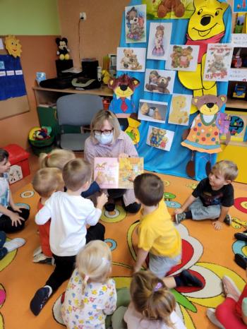 W dniu 24 listopada nasze przedszkole odwiedziła pani Bibliotekarka Magdalena Pawlusiak z Biblioteki Gminnej w Rajsku. Pani Madzia przeczytała we wszystkich grupach bajeczki o misiu a mianowicie: Kaczuski wysłuchały bajki o misiach z czterech stron świata – ,,Herbatka u Promyka” autorstwa Anieli Cholewińskiej, Żabki bajki Janiny Porazińskiej pt. ,,Pamiętnik Czarnego noska” – fragmenty ,,Kim Jestem? i Miłość za szybą”. Natomiast najmłodsze przedszkolaki wysłuchały bajki Patrycji Zarawskiej ,,Miś Mioduś”. To był bardzo ciekawy dzień!! |