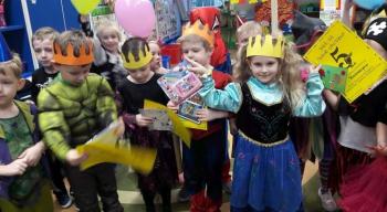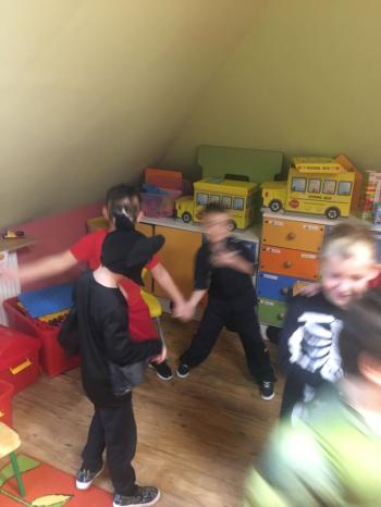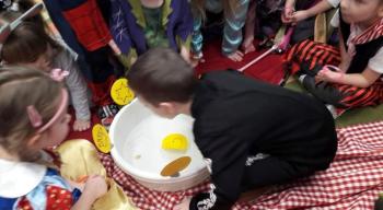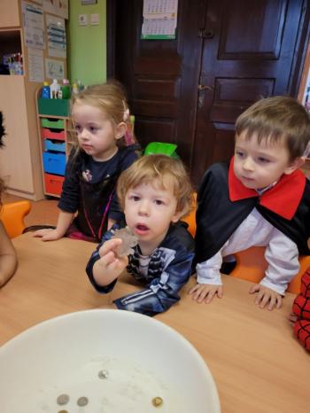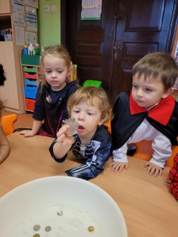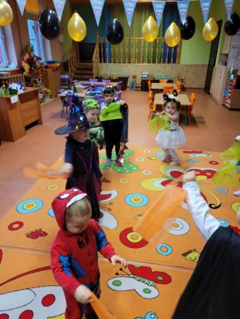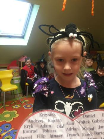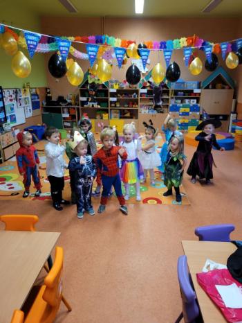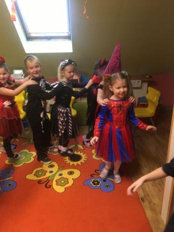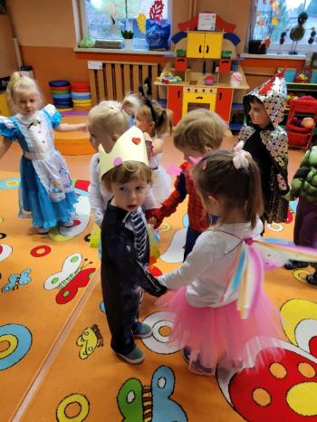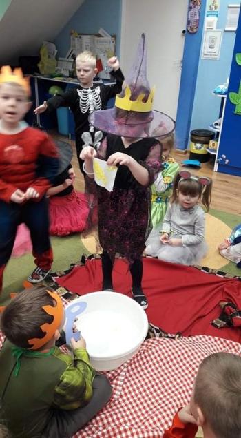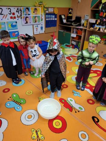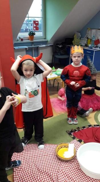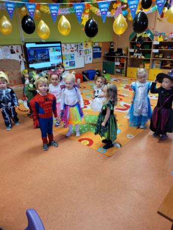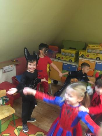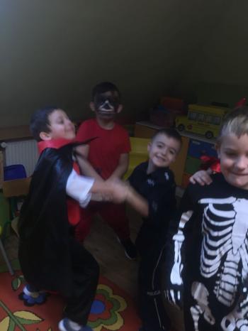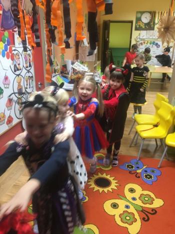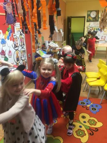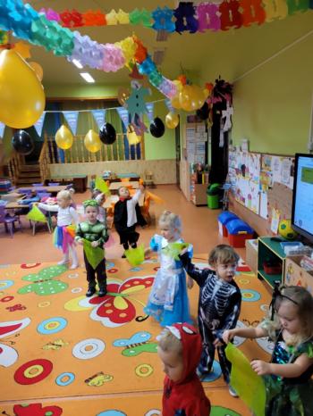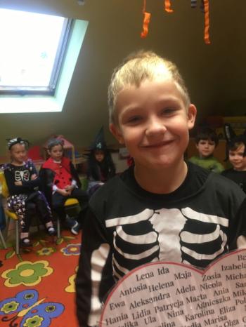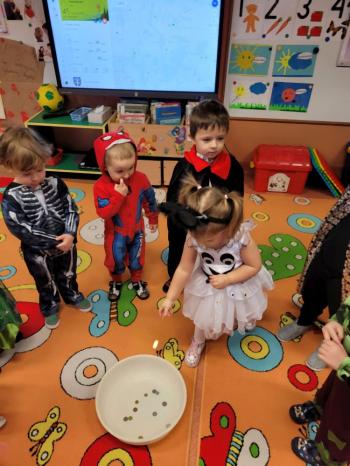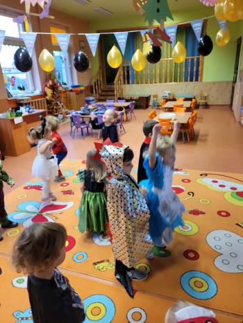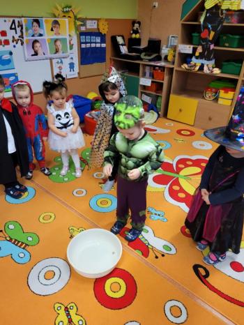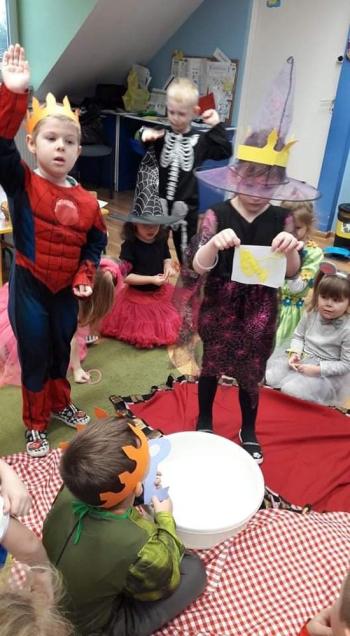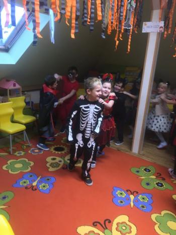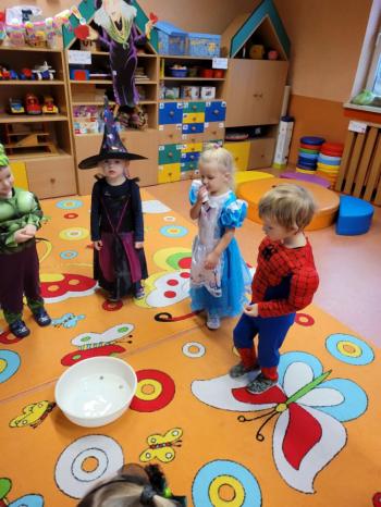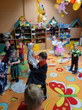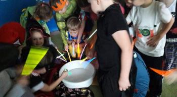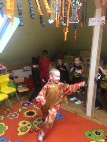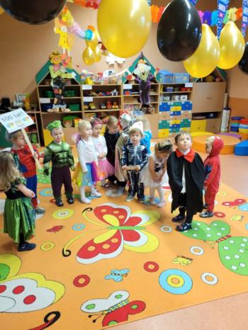 W dniu 29 listopada w naszym przedszkolu odbył się bal andrzejkowy pt. ,,Stwory-potwory”. Przedszkolaki przyszły przebrane w przeróżne straszne postacie bajkowe. W każdej sali słuchać było dźwięki muzyki i taneczne pląsy dzieci. Wszystkie przedszkolaki zapoznały się z tradycjami i wierzeniami ludowymi oraz skąd wywodzą się wróżby? Słoneczka wrzucały monety do studni, aby spełniły się ich życzenia. Uczestniczyły we wróżbach z kolorami, jaka przyszłość je czeka, jaki zawód będą wykonywać oraz tańczyły z czarodziejskimi chustkami tworząc dziwną postać i pląsały w parach na gazecie. Na koniec wspólnie z panią lały wosk. Natomiast Kaczuszki bawiły się w czarodziejskie wróżby jak: „Buty za drzwi”, „Prezenty świąteczne”, „Czym będę podróżować”, ,,Wróżba z kubkami i talerzami”, ,,Kalambury”- jaki to zawód”, „Imiona” oraz „Kleksy, cienie i klucz”, które były przeplatane tańcami. U Żabek podobnie taneczne pląsy przeplatane były wróżbami i przepowiedniami jak: „Symbole andrzejkowe”- poznanie znaczenia i zabawa w serce. „Zabawy z liczbami”- odczytywanie wróżb i przepowiedni z liczb. „Poznaj swój zawód”- zabawa połączona z pracą plastyczną. „Andrzejkowe pytania”- gra z rozwiązywaniem zagadek. „Jaki masz znak zodiaku?”- odczytanie przepowiedni na przyszły rok oraz na koniec „Lanie wosku”. W trakcie zabawy andrzejkowej odbyły się także Listopadowe Urodzinki. W Słoneczkach świętował Wojtuś , w Kaczuszkach: Ola, Filip, Kasia, Szymon, Artur i Klara.Natomiast w Żabkach swoje święto miał Karol. W każdej grupie było bardzo wesoło i radośnie. Bawiliśmy się i tańczyliśmy przy radosnej muzyce. W tym szczególnym dniu przedszkolacy i panie składali listopadowym solenizantom najserdeczniejsze życzenia i śpiewali głośne ,,Sto Lat”. Solenizanci otrzymali kolorowe dyplomy, kartki urodzinowe oraz upominki.
