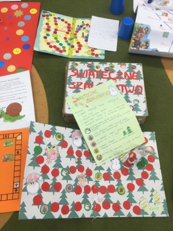 Przedszkolaki wraz ze swoimi rodzinami wzięły udział w konkursie na stworzenie gry planszowej. Głównym celem konkursu było promowanie idei gier planszowych, jako spędzanie wolnego czasu w gronie rodzinnym, jak również rozwijanie umiejętności społecznych, intelektualnych oraz pobudzanie kreatywności i wyobraźni. Wszystkie gry prezentowały się wspaniale. Na wyróżnienie zasługują: Tymon Mrówka z rodzicami stworzył grę "Mikołajkowe prezenty". Jagoda Nawalany, Filip i Barbara stworzyli grę "Świąteczny wyścig Psi Patrol". Karol Rozmus z mamą stworzył grę "Świąteczne szaleństwo". Karol i Wiktor Szafran stworzyli grę "Zabawa z gimnastyką". Maja i Marcel Szpakowscy z rodzicami stworzyli grę "Uciekaj myszko". Magdalena Wójcik, Barbara i Adam stworzyli grę "Zagraj z nami w sportową gąsienicę". Jakub Żołna, Kinga, Anna i Piotr stworzyli grę "Żywioły Żołny". W nagrodę za udział w konkursie dzieci otrzymały dyplomy oraz voucher na wejście do Parku Family Fun. Pozostałe dzieci, które uczestniczyły w konkursie także otrzymały nagrody a byli to: Julia i Zuzia Czerwienka z rodzicami stworzyły grę "Droga do Mikołaja". Bartosz i Karol Figura, Julia z mamą i tatą stworzyli "Grę planszową Zwierzątka". Błażej Klimeczek stworzył grę "Pędzące żółwie". Liliana Naglik stworzyła grę "Uśmiechnięte buźki". Aleksandra Szczygieł i Konrad stworzyli grę "Kolorowa buźka". Zgodnie z duchem pozytywnej rywalizacji, dzieci w przedszkolu będą grały w gry, które stworzyły ze swoimi rodzinami. Wszystkim uczestnikom konkursu serdecznie dziękujemy za zaangażowanie i zapraszamy do udziału w kolejnych konkursach. Koordynatorem konkursu była Anna Szpakowska.