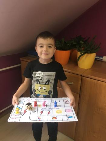 Rajskie przedszkolaki wraz ze swoimi rodzinami wzięły udział w konkursie na grę planszową...