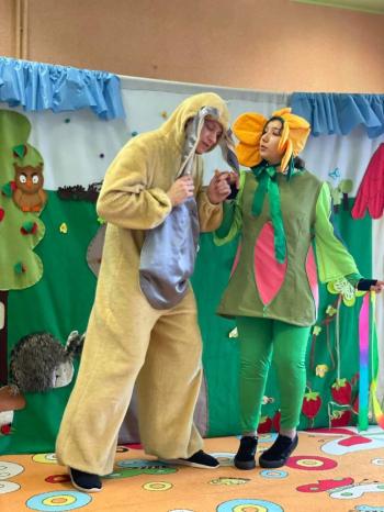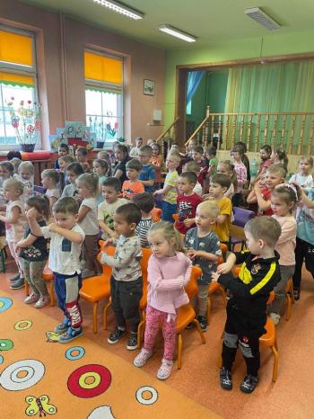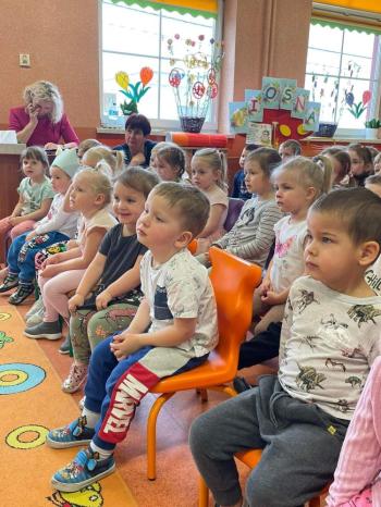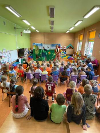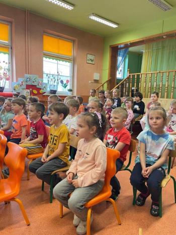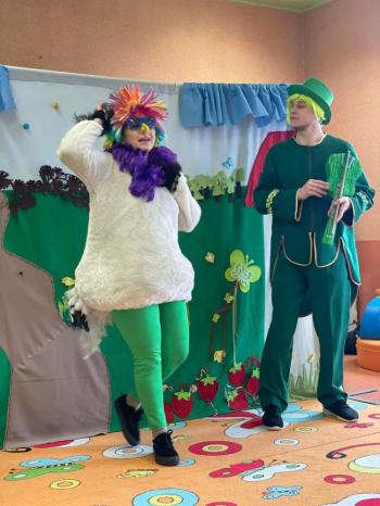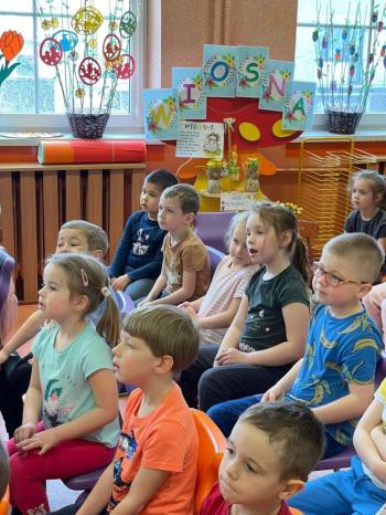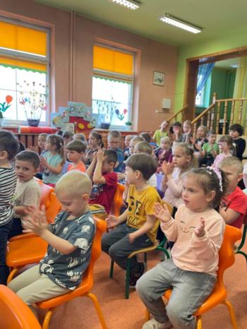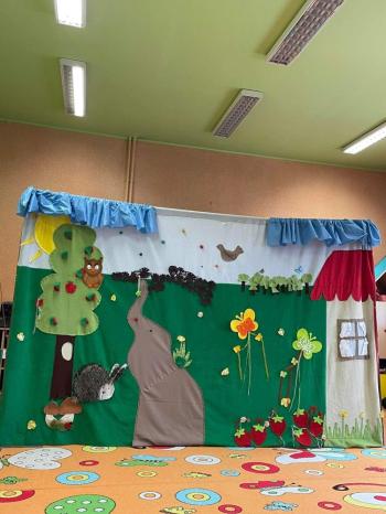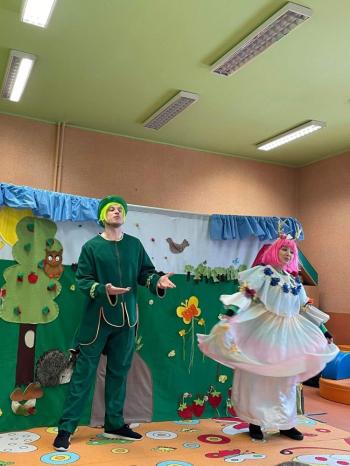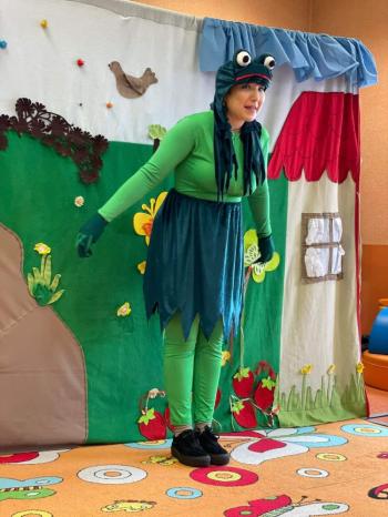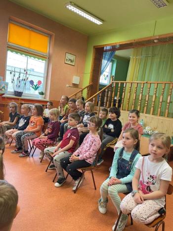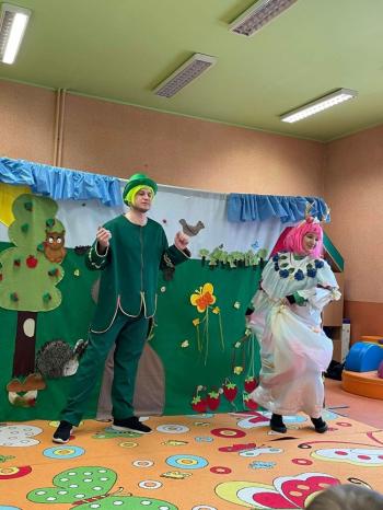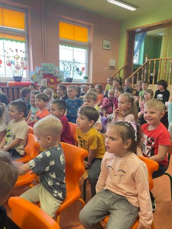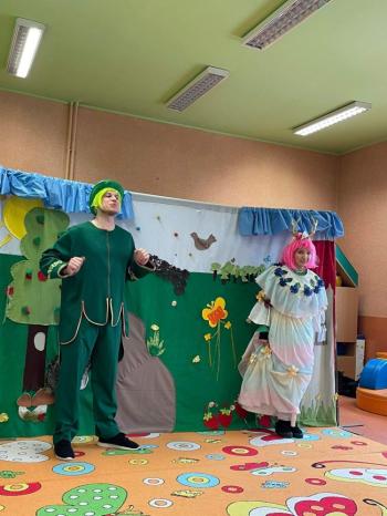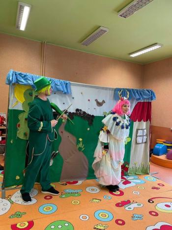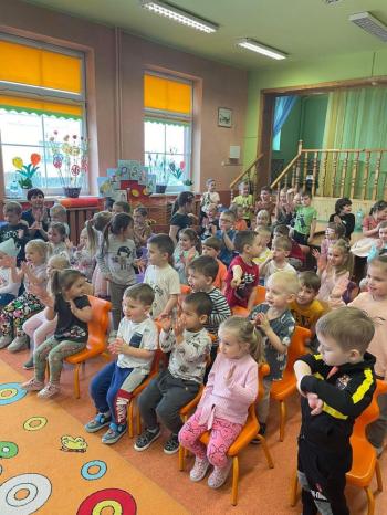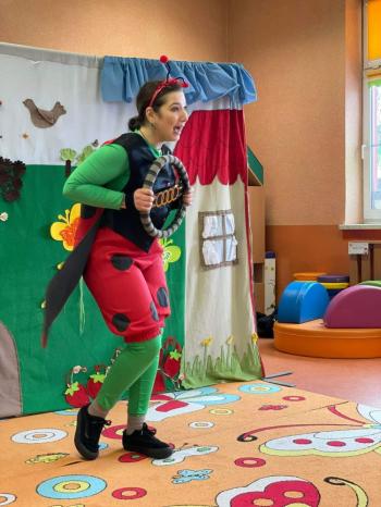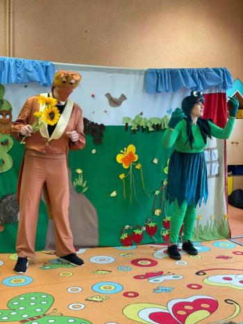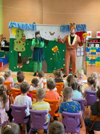 1kwietnia gościł w naszym przedszkolu krakowski teatrzyk ,,Skrzat” z przedstawieniem pt."Bal u Królowej kwiatów". Aktorzy wcielali się w wiele postaci m. in. konika polnego, żabę, lisa, królową kwiatów, biedronkę, kurkę wodną, królika czy skrzata. Każda postać miała piękny i kolorowy kostium. Dzieci zachwycały się śmiesznymi dialogami, rekwizytami i ciekawą fabułą. Przedszkolaki w teatrzyku brały aktywny udział, odpowiadały na pytania, śpiewały piosenki wspólnie z aktorami oraz poruszały się w rytm muzyki. Dzieciom przedstawienie bardzo się podobało i nagrodzili aktorów gromkimi brawami.