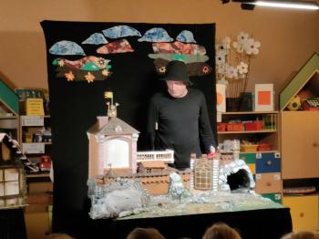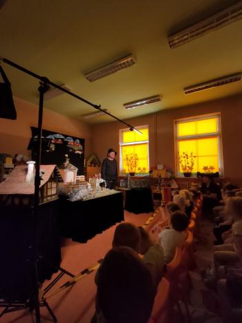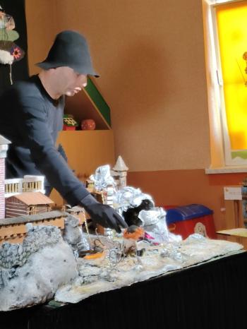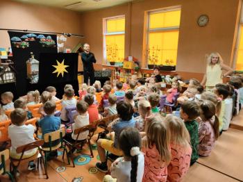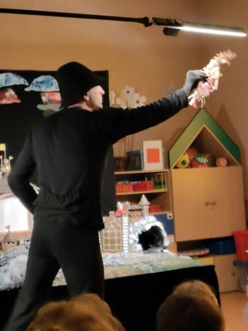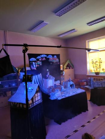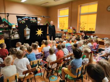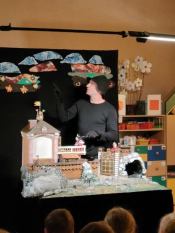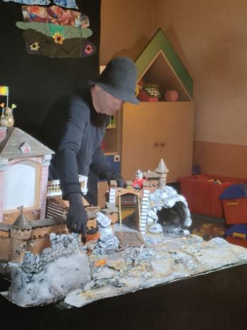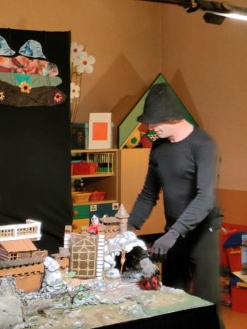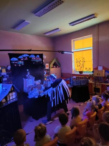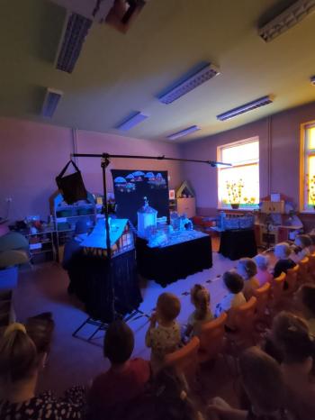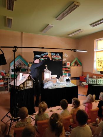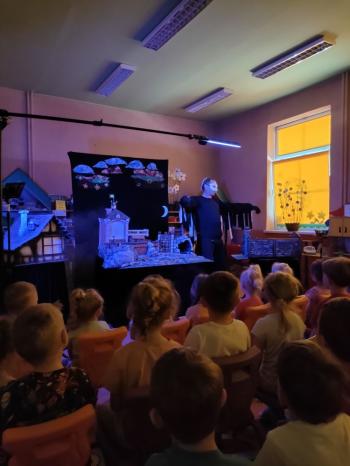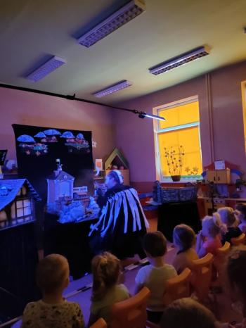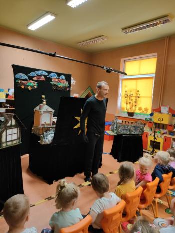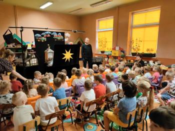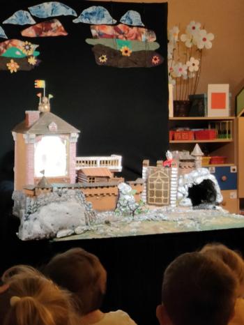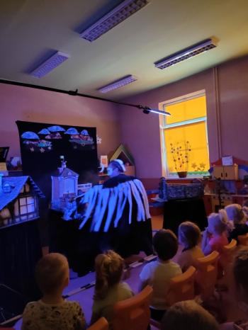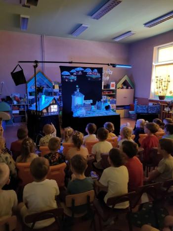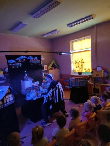 W dniu 19 maja nasze przedszkolaki obejrzały teatrzyk kukiełkowy Alpmim z przedstawieniem pt. ,,Baśń o chłopcu, który pokonał strach”. Był to historia niezwykła w formie teatru lalek, trzymająca w napięciu, intrygująca z częstymi zwrotami akcji. Przedszkolaki oglądały z wielkim zaciekawieniem i zainteresowaniem, po przedstawieniu mogły obejrzeć teatr za kulisami.