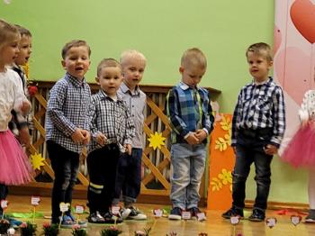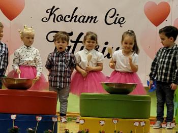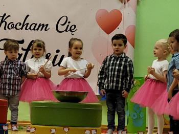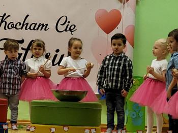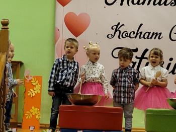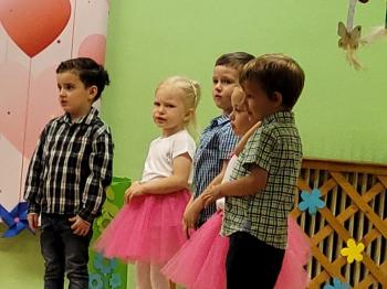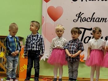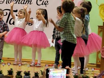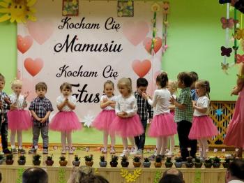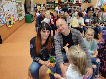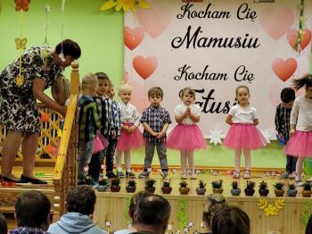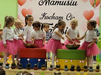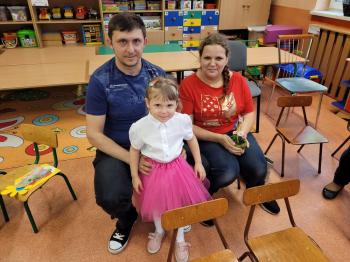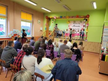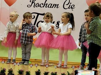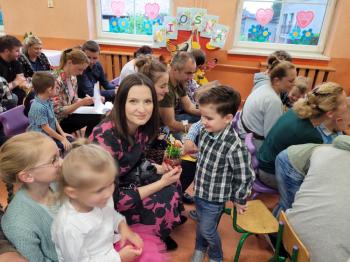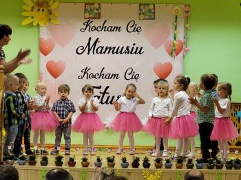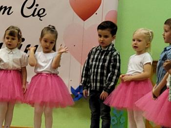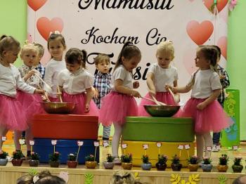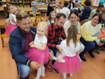 25 maja najmłodsze przedszkolaki zaprosiły swoich rodziców do przedszkola na uroczystość z okazji ,,Dnia Mamy i Taty”. Pani dyrektor Krystyna Bezwińska serdecznie powitała wszystkich rodziców , składając najcieplejsze życzenia z okazji ich święta. Słoneczka w przepięknych strojach zaprezentowały wiersze, piosenki oraz taneczne pląsy z wykorzystaniem kolorowych wstążek i drewnianych łyżek. Na koniec przedstawienia zaśpiewały ,,100 lat” i radosnym okrzykiem zawołały do rodziców: ,,Kochamy Was”. Rodzice swoje pociechy nagrodzili gromkimi brawami. Po występach przedszkolaki obdarowały swoich rodziców laurkami a następnie mamusie kolorowymi doniczkami z kwiatuszkami a tatusiów wesołymi pędzlami. To był dzień wielu wzruszeń i radości ze swoich małych Słoneczek!!!