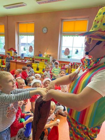 15 grudnia nasze przedszkole odwiedził Pan Humorek wraz ze swoim magicznym show! Przedszkolaki przeniosły się do krainy fantazji, magii i zabawy przy muzyce. Były kolorowe rekwizyty, sztuczki przeplatane dużą dawką humoru. W czarach panu Humorkowi pomagały dzieci wypowiadając magiczne zaklęcie - „A ram zam, zam, a ram zam, zam, guli, guli, guli, guli, gul!. Za każdym razem zaklęcie działało. Nasze przedszkolaki były oczarowane umiejętnościami Pana Humorka w zakresie magii i iluzji. Radości i uśmiechu dzieci nie było końca. Serdecznie dziękujemy za wspaniałą zabawę Panie Humorku. To był dzień wielu, wielu wrażeń, radości i magii!! Serdecznie dziękujemy za sponsorowanie Mikołajkowej zabawy z Panem Humorkiem pani Dyrektor OKSiR Jadwidze Szczerbowskiej , panu sołtysowi Maciejowi Majerskiemu i Radzie Sołeckiej. |