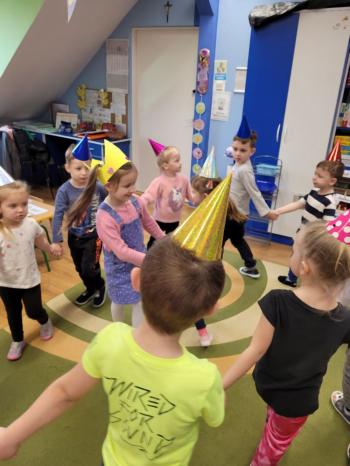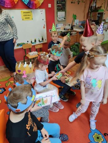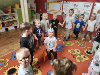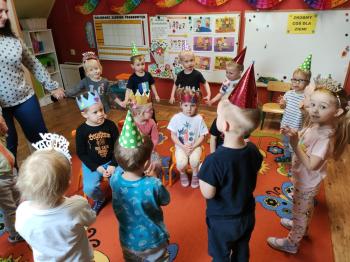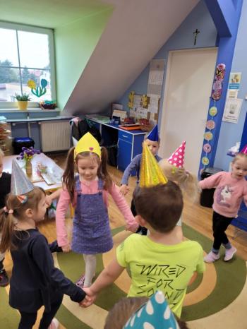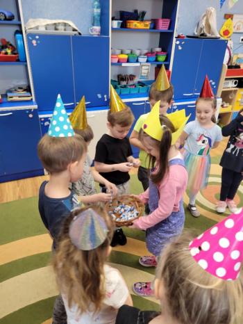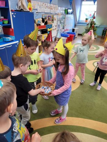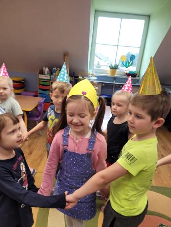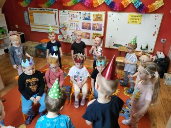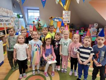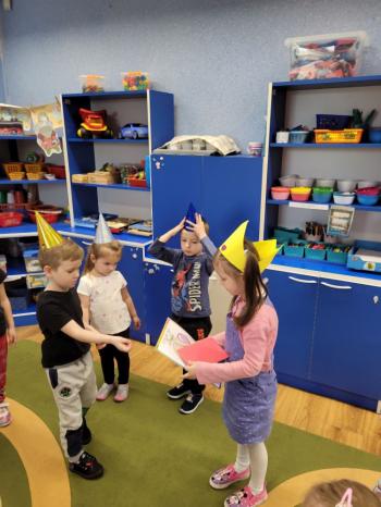 17 kwietnia obchodziliśmy w naszym przedszkolu urodzinki. W Słoneczkach świętowali Marcelinka, Marcel, Mikołaj, Aleksander oraz Wiktoria . W Kaczuszkach świętowała Maja. Natomiast w Żabkach świętowali Borys i Szymon. W każdej grupie było bardzo wesoło i radośnie. Bawiliśmy się w różnorodne zabawy i tańczyliśmy przy radosnej muzyce. W tym szczególnym dniu przedszkolacy i panie składali kwietniowym solenizantom najserdeczniejsze życzenia i śpiewali głośne ,,Sto Lat”. Solenizanci otrzymali kolorowe dyplomy, kartki urodzinowe oraz upominki. |