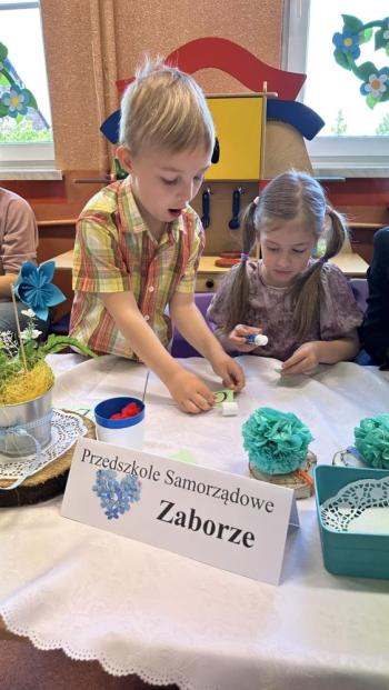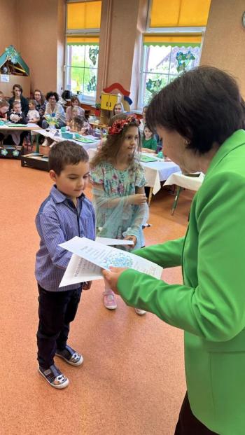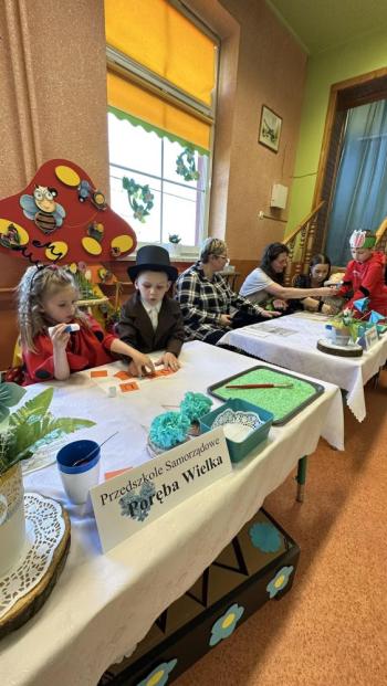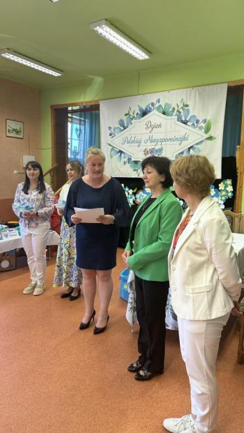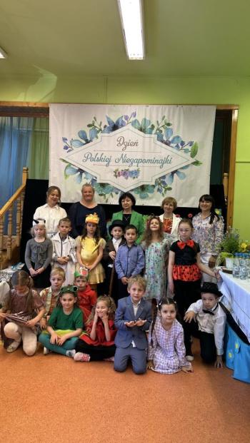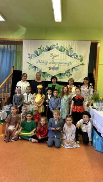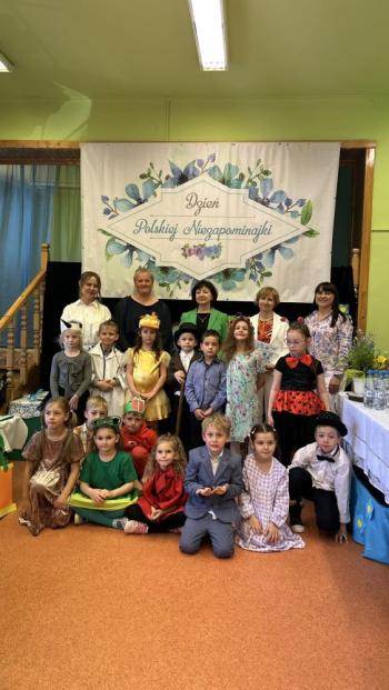 W środę10 maja świętowaliśmy w naszym przedszkolu już po raz VII Dzień Polskiej Niezapominajki. W tym roku święto miało charakter spotkania się z przedszkolakami formie konkursu ,, Polskie wiersze przez dzieci znane i lubiane”. Do przedszkola przybyli goście: Pani Wójt Halina Musiał, pani bibliotekarka z Gminnej Biblioteki w Rajsku Magdalena Pawlusiak, pani Weronika Sporysz pracownik OKSiR w Oświęcimiu oraz przedszkolacy z Przedszkoli Gminnych wraz z nauczycielami i rodzicami. W konkursie uczestniczyły następujące przedszkola: Niepubliczne Przedszkole „Smyk” w Babicach, Przedszkole Samorządowe w Brzezince, Przedszkole Samorządowe w Grojcu, Zespół Szkolno-przedszkolny w Harmężach, Przedszkole Samorządowe w Porębie Wielkiej, Przedszkole Samorządowe we Włosienicy, Przedszkole Samorządowe im. Treflika w Zaborzu oraz Przedszkole Samorządowe w Rajsku. Zabawę konkursową rozpoczęliśmy od integracyjnego tańca do piosenki „Na wyspach Bergamutach”. Dzieci prezentowały się recytując wiersze w pięknych przebraniach i z wykorzystaniem rekwizytów. Wszystkie przedszkolaki wykazały się niezwykłym talentem recytatorskim i aktorskim. Wiersze były przeplatane konkurencjami, które dzieci ze zręcznością i sprytem doskonale wykonywały. Pierwszym zadaniem było odszukanie wyrazu ukrytego pod piłeczkami ping-pongowymi. Zawodnicy musieli złapać piłeczki specjalnymi „chwytakami”, ułożyć i odczytać hasło „okulary”. Kolejną konkurencją było odszukanie w ryżu za pomocą pędzelków brakującej litery w abecadle i przypiąć ją we właściwym miejscu na piecyku. Przedszkolaki ucieszyły się z zadania technicznego, które polegało na przeplataniu muliny na drewnianych krążkach, tak aby powstał wazon. W ramach zaleceń lekarza dzieci układały mikstury z recepty, liczyły pompony i używając łyżeczki przenosiły je do właściwego naczynia. Na koniec przedszkolaki rozwiązały krzyżówkę, niektóre z nich samodzielnie czytały pytania, a wszyscy wypisali hasła do krzyżówki. Komisja konkursowa jednogłośnie przyznała pierwsze miejsce wszystkim przedszkolakom. Dzieci wykazały się niebywałymi talentami, wiedzą i umiejętnościami oraz znajomością wierszy polskich pisarzy. Po obradach komisji zostały wręczone dyplomy oraz nagrody, które zostały ufundowane przez dyrektora OKSiR-u Gminy Oświęcim panią Jadwigę Szczerbowską. Na koniec zaproszono wszystkich gości na słodki poczęstunek oraz wykonano pamiątkowe zdjęcie. Pani Dyrektor Krystyna Bezwińska podziękowała wszystkim za przybycie i aktywny udział w konkursie. TO BYŁ WYJĄTKOWY DZIEŃ!!!