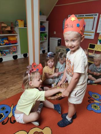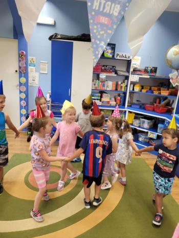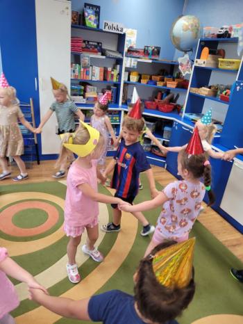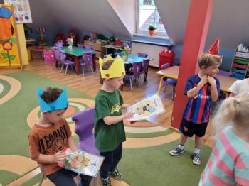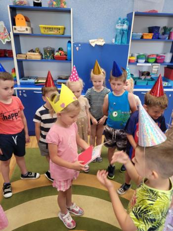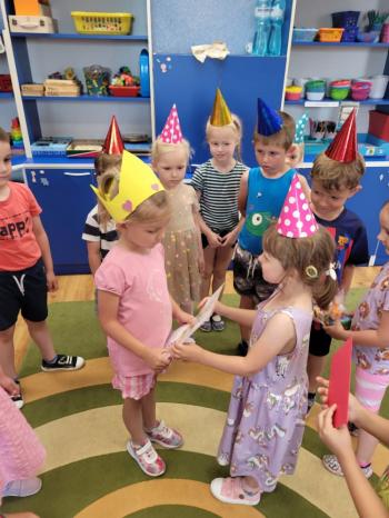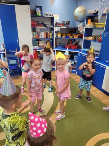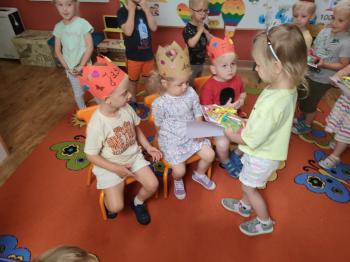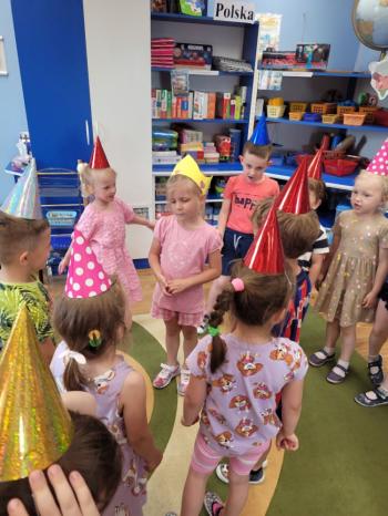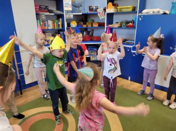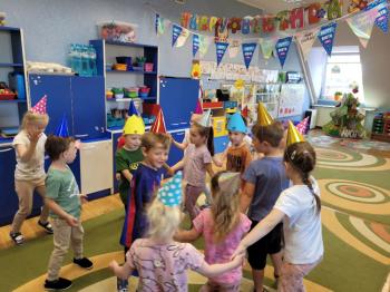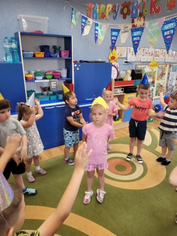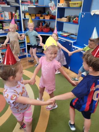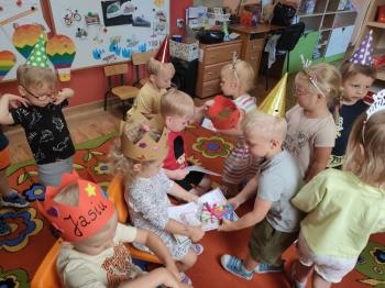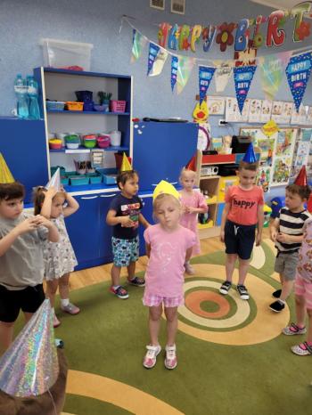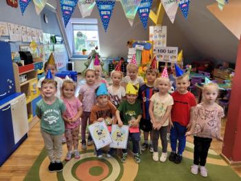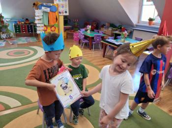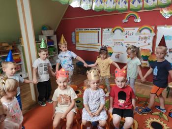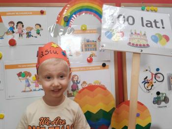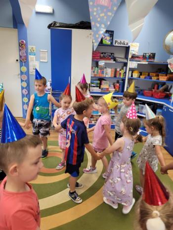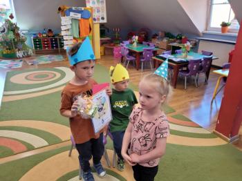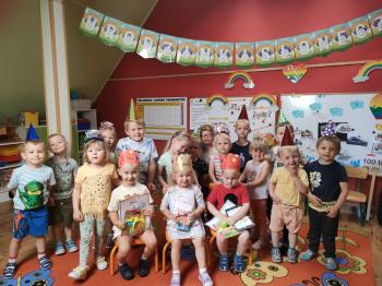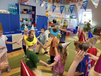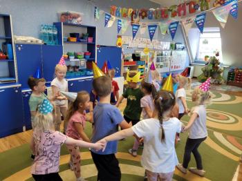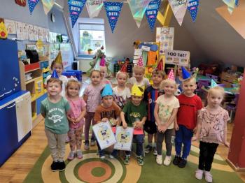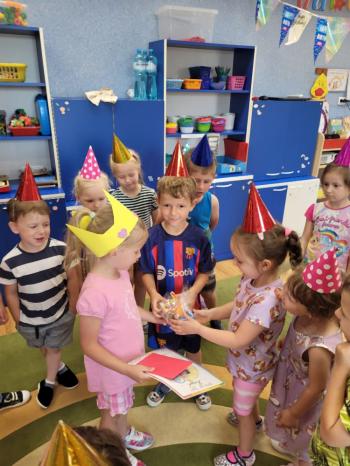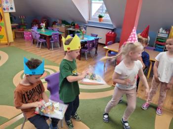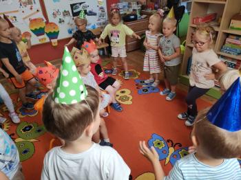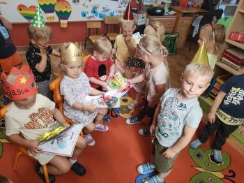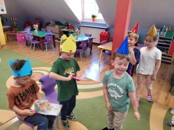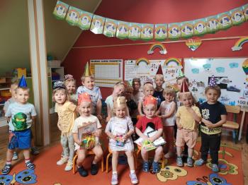 12 czerwca obchodziliśmy w naszym przedszkolu urodzinki. W Słoneczkach świętowali Jasiu, Filipek i Karolek. W Kaczuszkach świętował Borysek , Radziu oraz Kajusia. W każdej grupie było bardzo wesoło i radośnie. Bawiliśmy się w różnorodne zabawy i tańczyliśmy przy radosnej muzyce. W tym szczególnym dniu przedszkolacy i panie składali czerwcowym solenizantom najserdeczniejsze życzenia i śpiewali głośne ,,Sto Lat”. Solenizanci otrzymali kolorowe dyplomy, kartki urodzinowe oraz upominki. |
