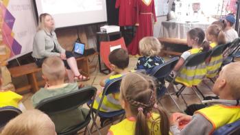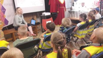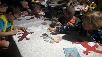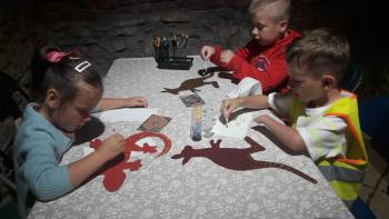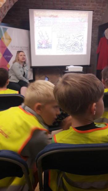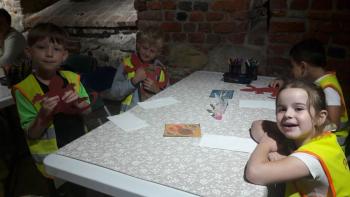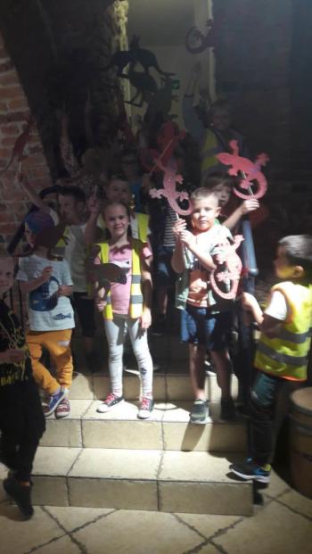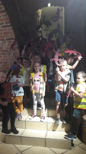 Dzieci z oddziału „Żabek” w dniu 29 czerwca na zakończenie roku szkolnego a zwłaszcza 7-latki żegnające już przedszkole, pojechały na wycieczkę do Muzeum Zamek w Oświęcimiu na warsztaty edukacyjne „Odkrycia geograficzne – Australia”. Wyjazd organizowany był w ramach nagrody za udział w konkursie plastycznym pt. „Jak cieśla Franek budował zamek”. Podczas części merytorycznej mającej charakter prezentacji multimedialnej, dzieci poznały historię wielkich odkryć geograficznych, ze szczególnym zwróceniem uwagi na kontynent – Australię. W drugiej części warsztatów starszaki wykonywały z papieru zwierzęta: strusia emu oraz jaszczurkę, wzorując się na sztuce aborygenów. Wycieczka była udana i przyniosła wiele wrażeń!!