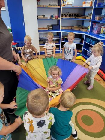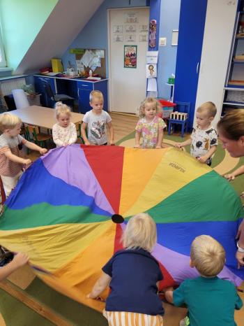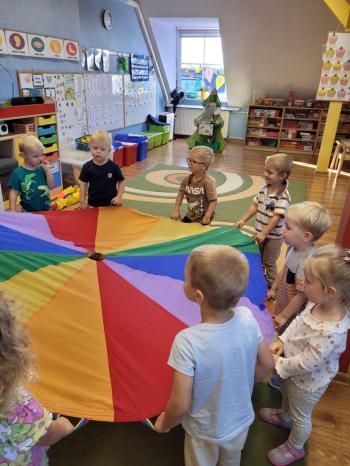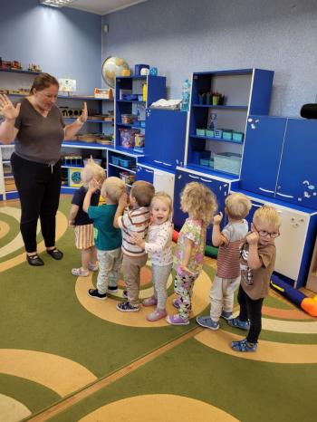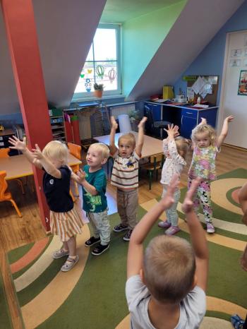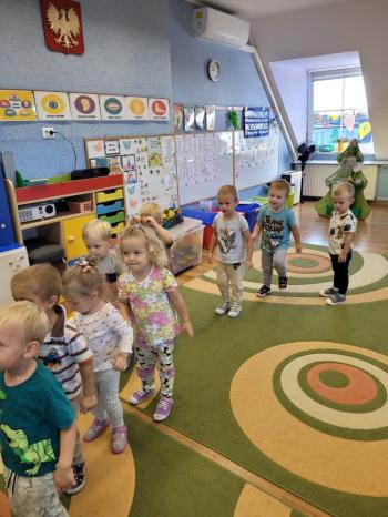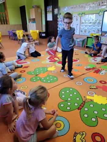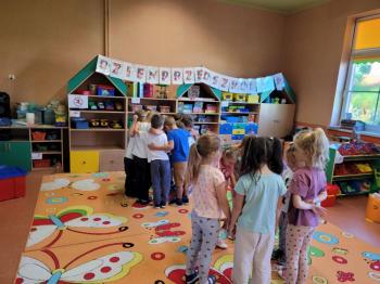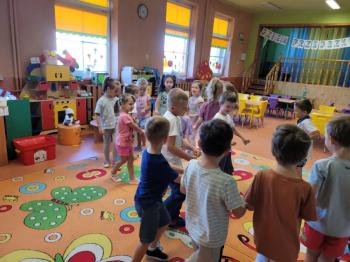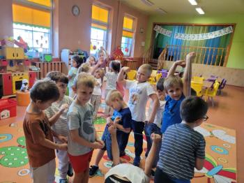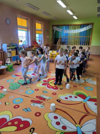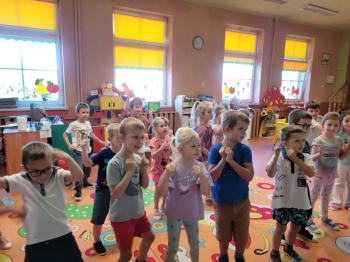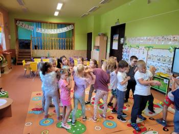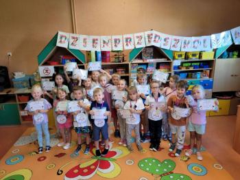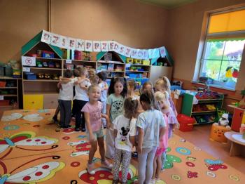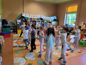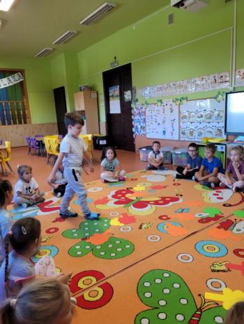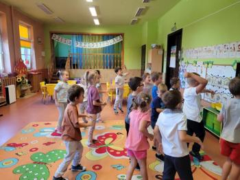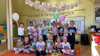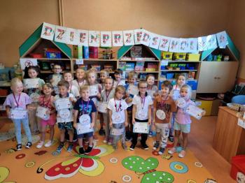 W dniu 20 września był Ogólnopolski Dzień Przedszkolaka. W Słoneczkach ten dzień przebiegał wesoło i radośnie. Maluszki bawiły się przy muzyce wykorzystując do zabawy chustę animacyjną. Natomiast  w Kaczuszkach rozpoczął się wspólnymi zabawami integracyjnymi: „Kółko graniaste”, „Słoneczna gimnastyka”, „ Baloniki”, „Znajdź swoje miejsce”.  Następnie „Kaczuszki” w grupach przy stolikach ozdabiały balony, „przemieniając” je w buzie radosnych przedszkolaków. Żabki w tym dniu bawiły się przy muzyce z wykorzystaniem gumy, później uczestniczyły w zabawach w formie toru przeszkód pomiędzy doniczkami  trzymając w ręce piłeczkę a także poruszały się jak  tańczący wąż. Ponadto odpowiadały na pytania związane z przedszkolem i swoją grupą. Następnie zatańczyły taniec przy piosenkach: ,,Jesteś super i Tańcz, tańcz”. Na zakończenie  wszystkie przedszkolaki otrzymały kolorowe medale, dyplomy oraz bańki mydlane. To był niesamowity dzień w przedszkolu!!