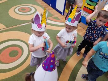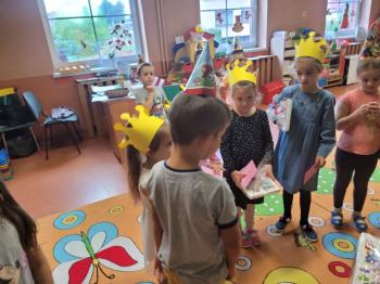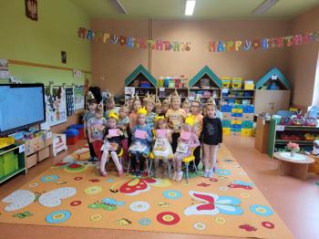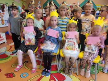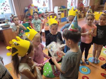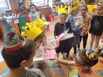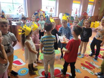 W poniedziałek 23 października obchodziliśmy w naszym przedszkolu urodzinki. W Słoneczkach świętowały Lilianna i Milenka. Natomiast w Żabkach swoje święto obchodziły Amelka, Jagoda, Maja i Zoja. W każdej grupie było bardzo wesoło i radośnie. Bawiliśmy się w różnorodne zabawy i tańczyliśmy przy radosnej muzyce. W tym szczególnym dniu przedszkolacy i panie składali październikowym solenizantom najserdeczniejsze życzenia i śpiewali głośne ,,Sto Lat”. Solenizanci otrzymali kolorowe kartki urodzinowe oraz upominki. |