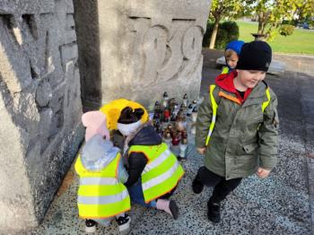W dniu 2 listopada przedszkolaki z oddziału III wybrały się wspólnie z panią na jesienny spacer. Podczas wyjścia odwiedziły Pomnik Poległym w Boju pod Rajskiem. Dzieci pozostawiły zapalone znicze, aby uczcić dzisiejsze Święto Zmarłych. PAMIĘTAMY!