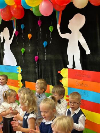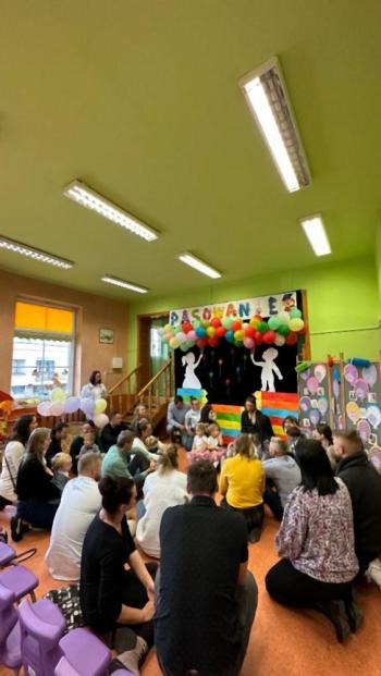 Pasowanie na przedszkolaka to wyjątkowa uroczystość, która w naszym przedszkolu odbyła się 14 listopada. Od samego rana trwały przygotowania a w sali gromadzili się goście. Nasze Kochane Słoneczka w przepięknych strojach były bardzo przejęte i z niecierpliwością czekały na swoją uroczystość. Mali artyści zaprezentowali przygotowane z dużą starannością wiersze, piosenki oraz tańce. Po części artystycznej nastąpił akt pasowania czyli dotknięcie ramienia każdego przedszkolaka ogromną kredką przez Panią Dyrektor Krystynę Bezwińską. Dla przedszkolaków było to wielkie przeżycie a dla rodziców powód do dumy i zadowolenia ze swoich pociech. Wszystkie Słoneczka otrzymały dyplomy i upominki. Następnie po części artystycznej odbyły się warsztaty z rodzicami, gdzie przedszkolaki zaprosiły do wspólnej zabawy pt. ,,Mały pajączek” oraz do wykonania pajęczyny z patyków, sznurka i innych materiałów. To był niezwykły dzień dla naszych najmłodszych przedszkolaków. GRATULUJEMY !!! |