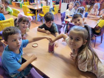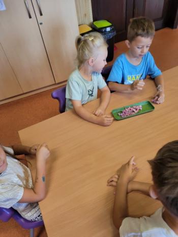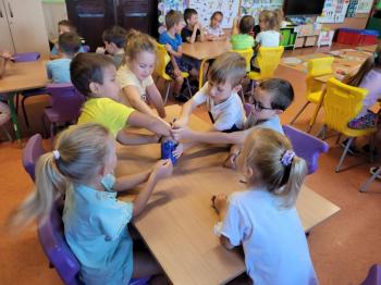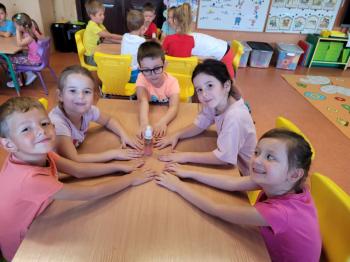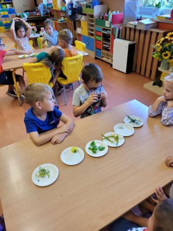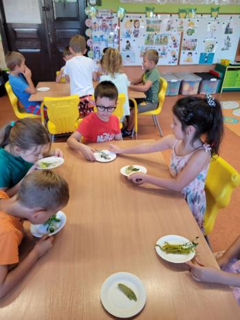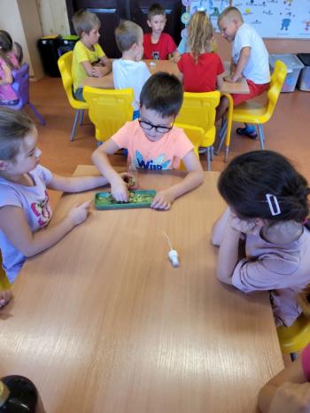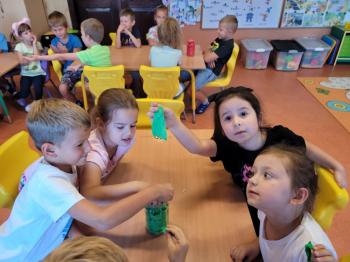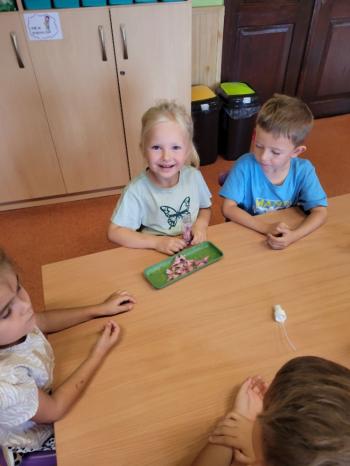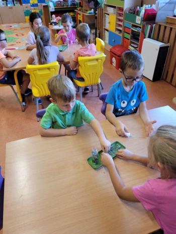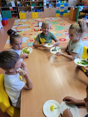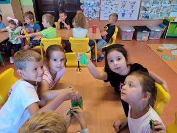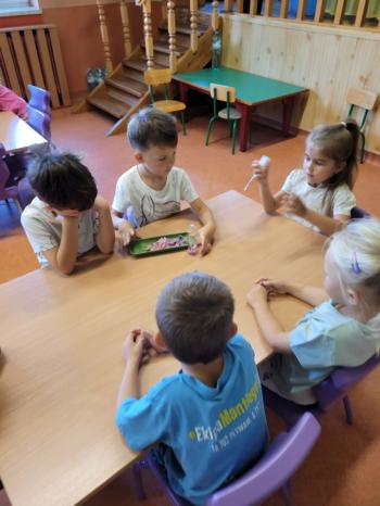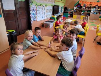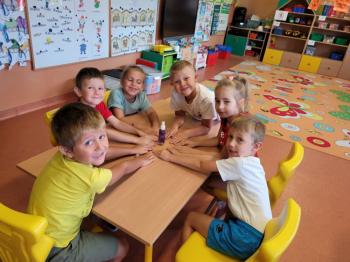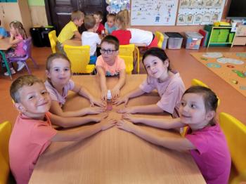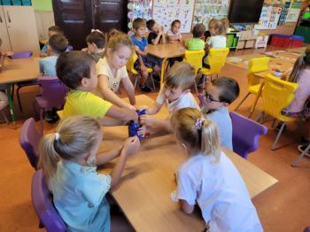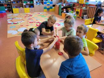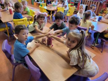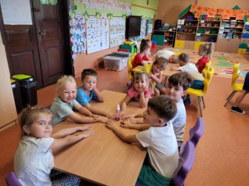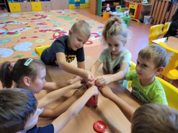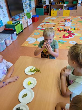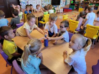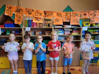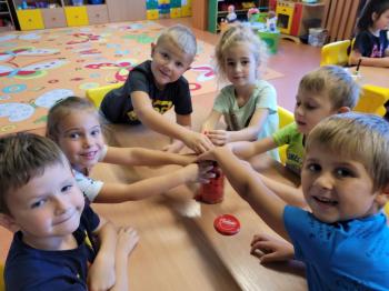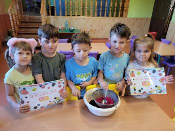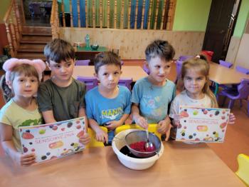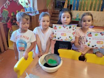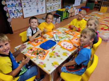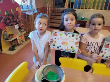 Codzienność przedszkolna jest doskonałym czasem do eksperymentowania, doświadczania i poznawania świata wszystkimi zmysłami. Wykorzystując naturalną ciekawość dziecka oraz potrzebę zabawy stwarzamy dziecku optymalne warunki by nie tylko mogło się prawidłowo rozwijać, ale również poznawać świat w fascynujący sposób. We wrześniu w Żabkach był realizowany Program Sensoryczna Akademia Mądrego Dziecka, którego celem było rozwijanie ciekawości świata i pasji do edukacji poprzez doświadczenia sensoryczne wśród przedszkolaków oraz dbanie o rozwój motoryki małej. Starszaki realizowały następujące wyzwania: 1.Wyzwanie ,,Smak czy węch? Rozmawialiśmy w formie burzy mózgów: Do czego potrzebny jest smak a do czego węch? Następnie bawiliśmy się w zabawę ruchową pt. ,,Sałatka warzywna”, później przedszkolaki uczestniczyły w zabawie poznawanie warzyw i owoców za pomocą narządu smaku i węchu. 2.Wyzwanie ,,Dzień pełen zapachów”. W tym dniu przedszkolaki wypowiadały się na temat różnych zapachów jakie już poznały. Następnie pracowały w zespołach, gdzie wybierały różne rośliny, produkty, przetwory i określały ich zapach. 3.Wyzwanie ,,Pachnący obraz”. Wszystkie przedszkolaki samodzielnie tworzyły swój pachnący obraz , wybierając przeróżne roślinki, kwiaty, listki, trawy , goździki itp. Powstały naprawdę wspaniałe ,,Pachnące obrazy”, które wzbogaciły wnętrza Biblioteki Pedagogicznej w Oświęcimiu 4.Wyzwanie ,,Fiolki pełne zapachów”. Podczas zabawy przy tym wezwaniu, przedszkolaki również w zespołach tworzyły swój własny zapach. Powstały zapachy przy użyciu kwiatów hortensji, floksów, lawendy oraz płatków róży. Dzieci jednogłośnie stwierdziły, że najpiękniejsze perfumy powstały z kwiatów hortensji. 5.Wyzwanie ,,Kolorowy zawrót głowy”. Natomiast najwspanialsza zabawa była podczas targania kolorowej bibuły i umieszczania jej w słoikach a następne zalewanie ciepłą wodą i wysypywanie do nich ryżu, który powstał naprawdę w pięknych kolorach. Myślę, że moje przedszkolaki wykorzystają go do stworzenia przepięknych prac plastycznych, które znajdą miejsce w naszej galerii w przedszkolu. Na zakończenie udziału w Programie Sensorycznej Akademii Mądrego Dziecka przedszkolaki otrzymały pamiątkowe dyplomy. Ponadto Nasze Przedszkole znalazło się w gronie 10 zwycięskich szkół!!