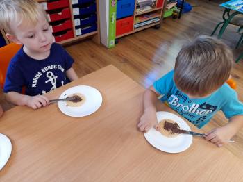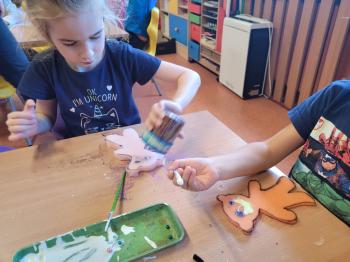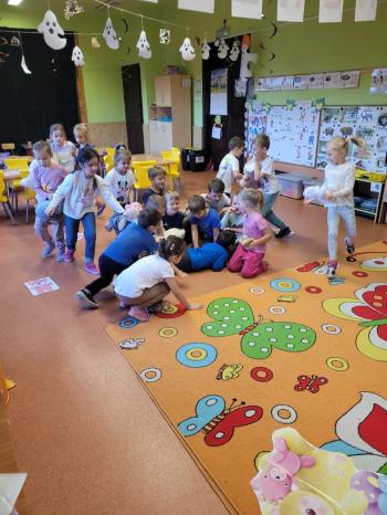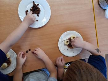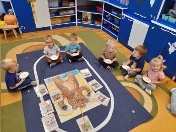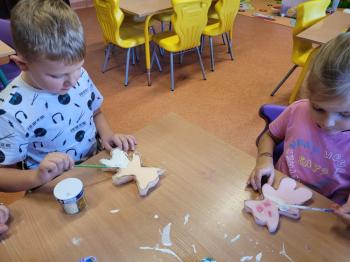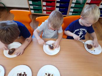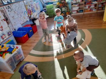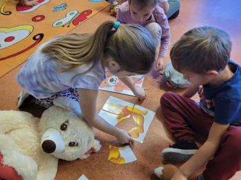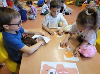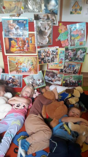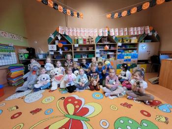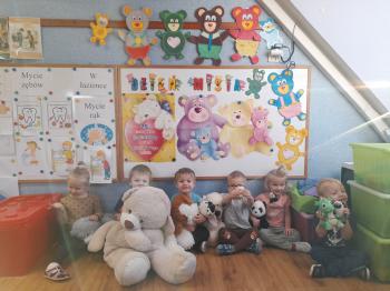 W dniu 25 listopada obchodziliśmy Dzień Pluszowego Misia. Słoneczka ten dzień rozpoczęły na powitanie zabawą Stary Niedźwiedź. Następnie wysłuchały informacji skąd pochodzi takie święto oraz poznały ciekawostki na temat niedźwiedzi. Później dopasowywały części ciała niedźwiedzia do ilustracji zgodnie z opisem. Następnie wykonały swojego misia przy pomocy wafelka, czekolady, bananów i rodzynek. Na zakończenie zatańczyły ze swoimi misiami do piosenki ,,Misio Pysio”. Natomiast Kaczuszki rozpoczęły ten dzień od parady misiów, gdzie dzieci przedstawiały swoje pluszowe misiaki. Następnie uczestniczyły w zabawie tropiącej „Misiaczkowo”, gdzie wyszukiwały bohaterów utworów literackich oraz bajek filmowych. Ponadto Kaczuszki brały udział w zabawach integracyjnych przy piosenkach „Gdy wesoły jesteś…”, „Jadą misie” oraz tworzyły misia przedszkolaka „Tymisia” z pakowego papieru, pociętych skrawków tekstylnych w grupach. Na zakończenie otrzymały pamiątkowe medale. Natomiast Żabki rozpoczęły ten dzień przy rytmach muzyki z bajek. Później opowiadały o swoim ulubionym misiu. Następnie bawiły się w zabawę Jaki miś ukrył się w pudełku określały przez dotyk jego fakturę. Ponadto uczestniczyły w zabawach: Misiowe zaprzęgi, Misiowe puzzle oraz poszukiwały Misiowej cyfry i kolorowały Misia według zaszyfrowanego kodu. Na zakończenie ozdabiały swojego kolorowym brokatem Misia z gąbki. To był naprawdę misiowy dzień!!! |