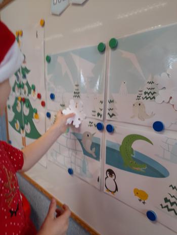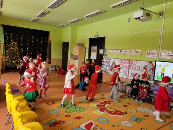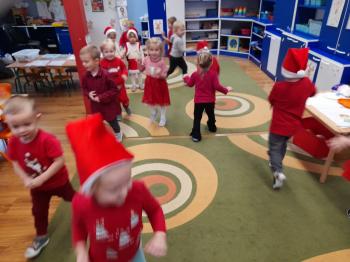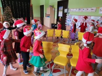W dniu 6 grudnia w naszym przedszkolu odbył się naprawdę magiczny dzień jakim są Mikołajki. W oczekiwaniu na przyjście Mikołaja przedszkolaki bawiły się w swoich salach. Do Słoneczek zawitały elfy które w tym roku postanowiły się zabawić i zrobiły dzieciom w sali psikusy. Pomieszały ubrania w szafie Mikołaja, pytały dzieci czy wiedzą czym jeździ Mikołaj i jak wygląda jego powóz. Ukryły w sali 7 reniferów, otworzyły ZOO i sprowadziły zwierzęta z różnych zakątków świata. Ponadto ogoliły Mikołajowi brodę, aby wyglądał śmiesznie, aniołkom domalowały wąsy a na choince powiesiły jedzenie. Na koniec do balonów powkładały różne przedmioty. Po wszystkim psoty swe zakończyły i obiecały, że w następnym roku będą się lepiej zachowywać. Natomiast Kaczuszki otrzymały wiadomość od Mikołaja oraz zadania, które miały wykonać. Były to: zabawa przy muzyce „Zaczarowane prezenty”, slalom „Śnieżynki”, kulki śniegowe i zaprzęgi reniferów”, zagadki „Kto i co ukrywa się na obrazku”, „Czego brakuje”. Na koniec uczestniczyły w zabawie „Mikołajkowe dary”. Natomiast Żabki uczestniczyły w zabawach: ,,Gorące krzesełko”, ,,Zimno- ciepło”, Zamrożona melodia oraz Najdłuższa broda Mikołaja. Po wspólnych zabawach w salach wszystkie przedszkolaki z wielkim oczekiwaniem czekały na spotkanie z Mikołajem. Przywitały go piosenkami oraz wspólną zabawą ,,Mikołaj jest razem z nami”. Mikołaj obdarował wszystkie dzieci przepięknymi prezentami. To był bardzo wyjątkowy i magiczny dzień!!! |