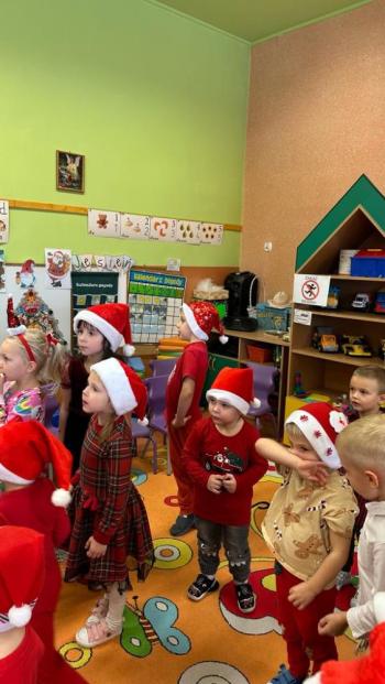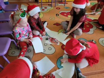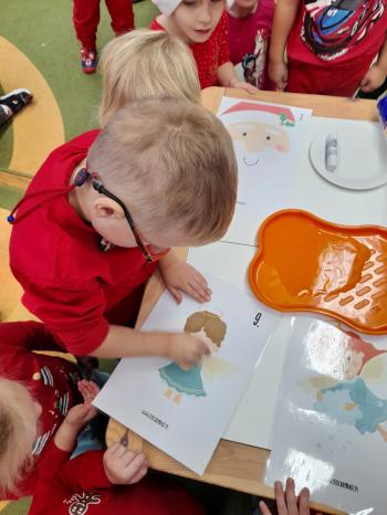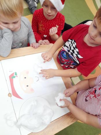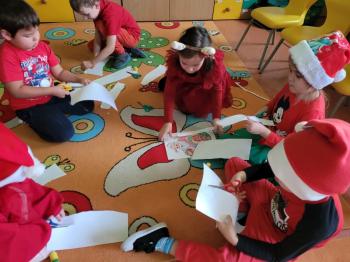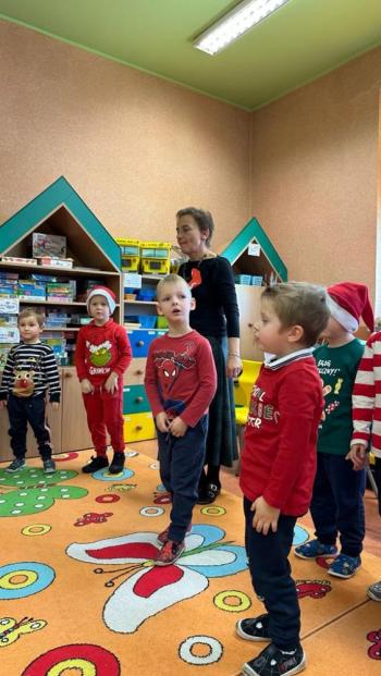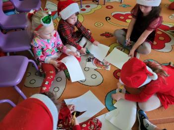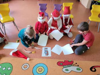 Święty Mikołaj nocą wędruje, w okna zagląda i nasłuchuje. Gwiazdka w okna świeci, gdzie są grzeczne dzieci…