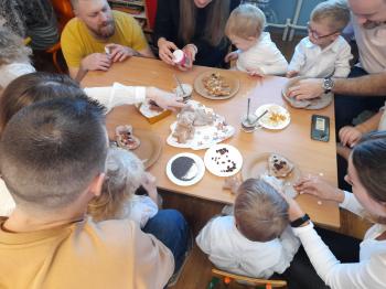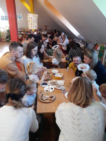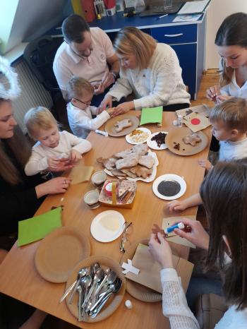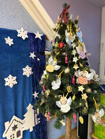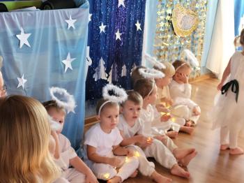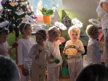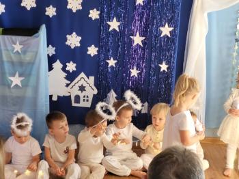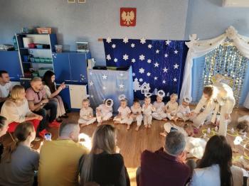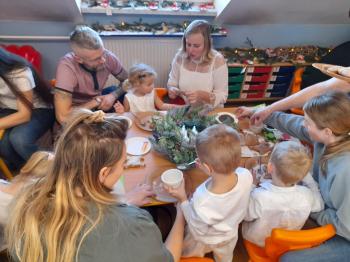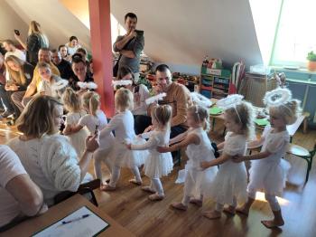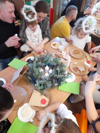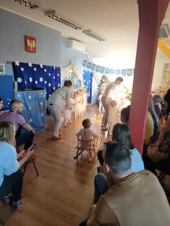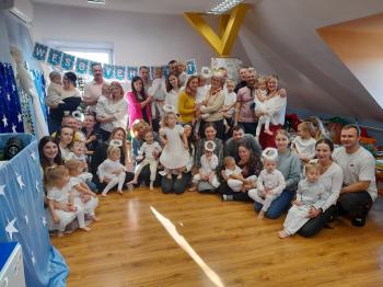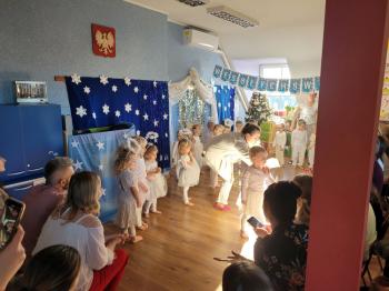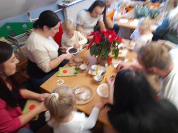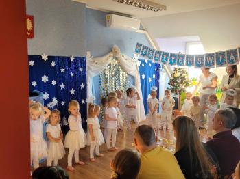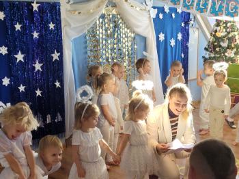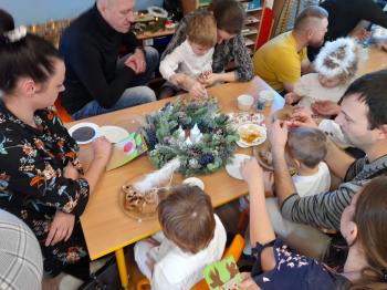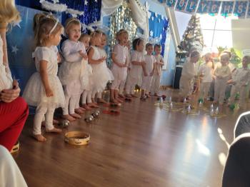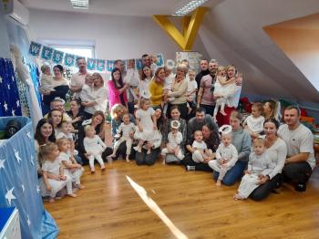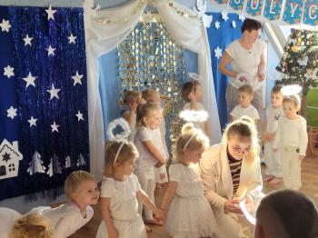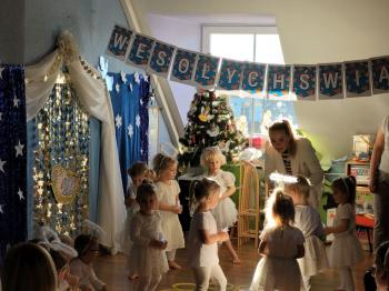 W dniu 18 grudnia w oddziale I Słoneczka odbyły się warsztaty Bożonarodzeniowe z rodzicami. W przepięknej biało niebieskiej scenerii nasze najmłodsze przedszkolaki ubrane cało na biało wjechały do sali na saneczkach, trzymając w rączkach dzwoneczki. Następnie zaprezentowały program artystyczny, gdzie recytowały wiersze, śpiewały kolędy, piosenki świąteczne i zimowe oraz zatańczyły Taniec Aniołków z lampionami. Po części artystycznej maluszki zaprosiły swoich rodziców do wspólnego dekorowania pierniczków na choinkę w przedszkolu i w domu oraz ozdabianie torby na pierniczki w formie renifera. Na zakończenie warsztatów przedszkolaki wspólnie z rodzicami udekorowały choinkę w sali i zaśpiewali kolędę ,,Przybieżeli do Betlejem”. To był naprawdę magiczny czas!!! |