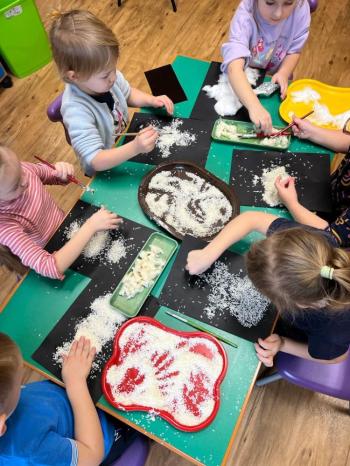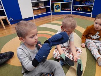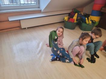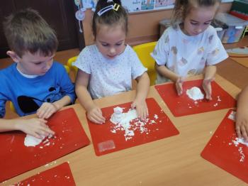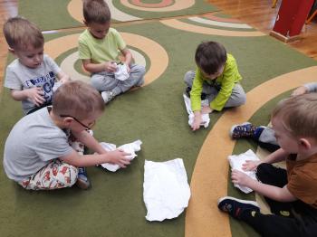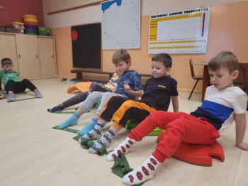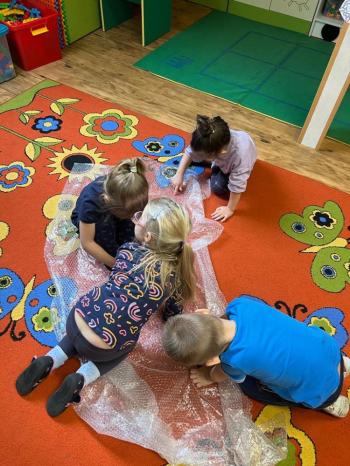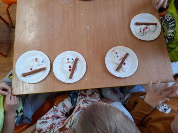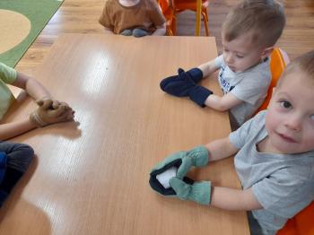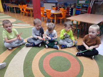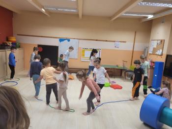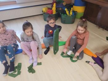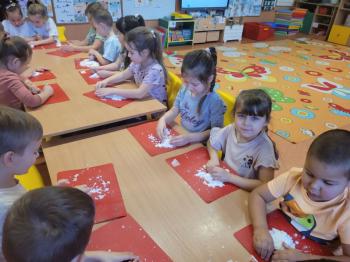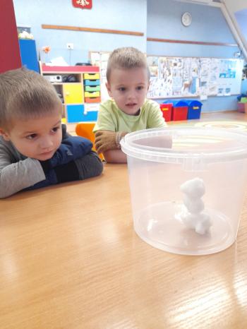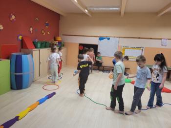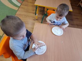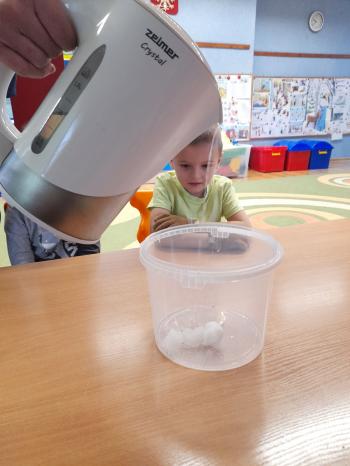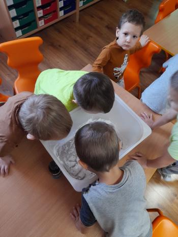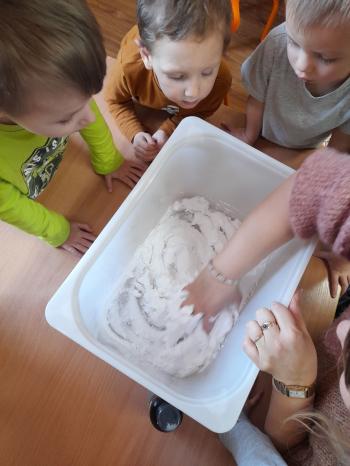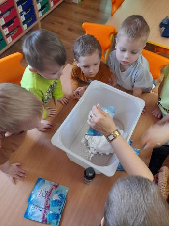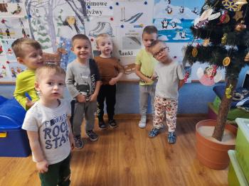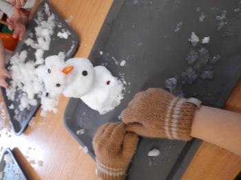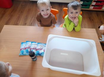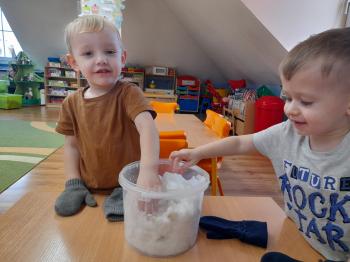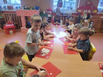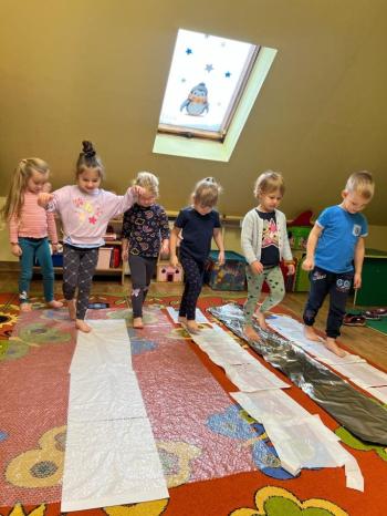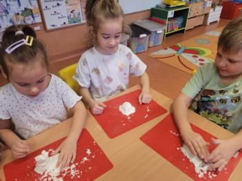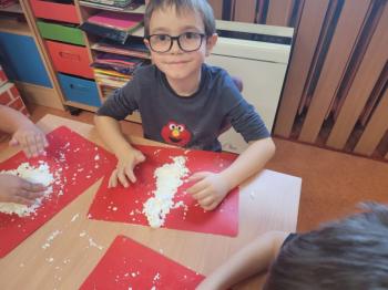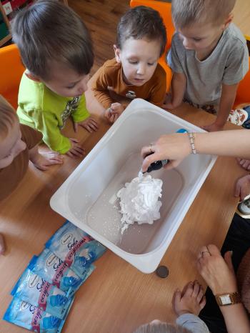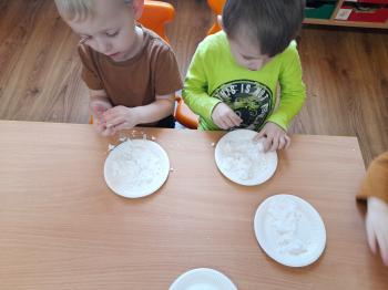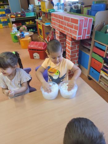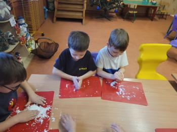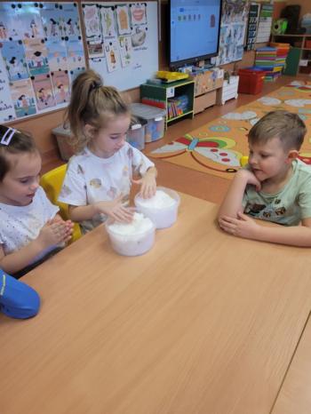 W dniu 12 stycznia odbył się dzień Aktywności pt.,, Dzień Śniegu”. Słoneczka ten dzień rozpoczęły od rozmowy o sportach zimowych, gdzie naśladowały sposób poruszania się sportowców uprawiających daną dyscyplinę zimową. Następnie uczestniczyły w zabawach: Wesołe kule, zabawy ze śnieżkami. Potem tworzyły za pomocą sody i pianki do golenia sztuczny śnieg, z którego ulepiły bałwanki. Na koniec eksperymentowały z prawdziwym śniegiem, określały jego właściwości, czy jest brudny czy czysty oraz kiedy się topi się a także lepiły bałwanki z prawdziwego śniegu. Natomiast u Kaczuszek ten dzień rozpoczął się powitaniem „Zimowe słoneczko uśmiech do Was ślę, jeśli chcesz się ze mną bawić to uśmiechnij się. Potem przedszkolaki uczestniczyły w zimowym spacerze sensorycznym a mianowicie boso spacerowały po wacie, ligninie, folii bąbelkowej oraz po folii aluminiowej. Brały udział w zabawach badawczych ze sztucznym i naturalnym śniegiem, oglądały przez lupy gwiazdki śniegowe. Na koniec wykonały pracę plastyczną „Nocne bałwanki” z wykorzystaniem wiórek kokosowych, ryżu i waty. Natomiast Żabki powitały się różnymi częściami ciała a później rozmawiały w formie burzy mózgów Po co jest potrzebny śnieg? Następnie przechodziły na boso po ścieżce sensorycznej z przyborami gimnastycznymi. Później bawiły się w eksperymentowanie z wodą, olejem, jajkiem oraz prawdziwym śniegiem. Na zakończenie lepiły śnieżne budowle ze sztucznego śniegu, który wykonały z mąki i oleju. To był niesamowity dzień dla wszystkich przedszkolaków!!! |