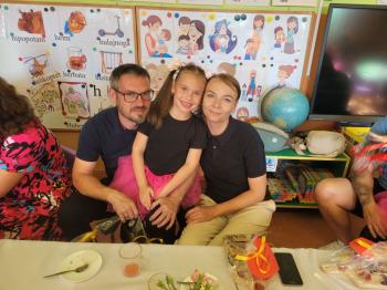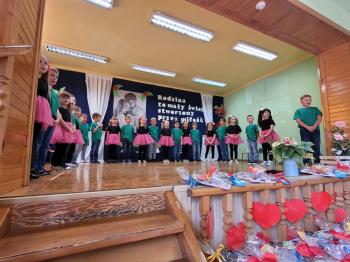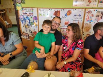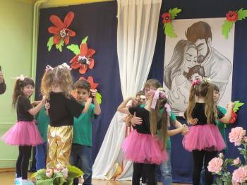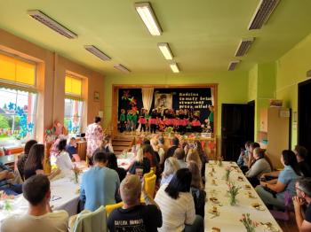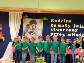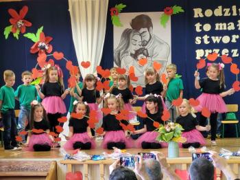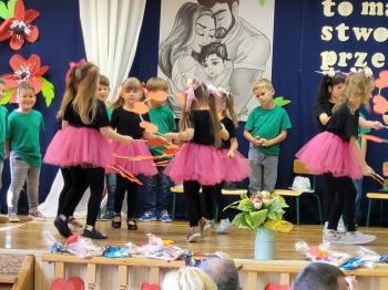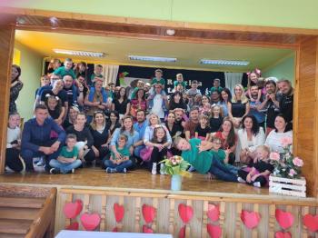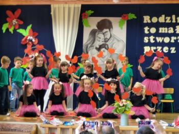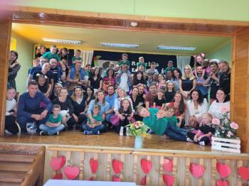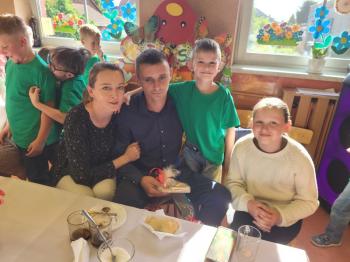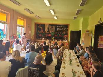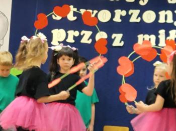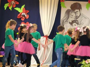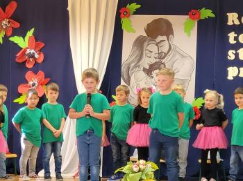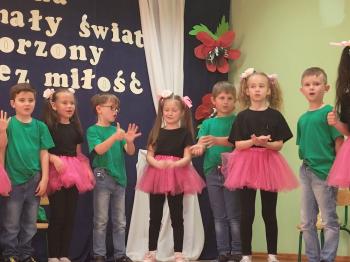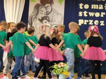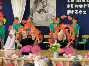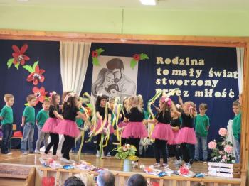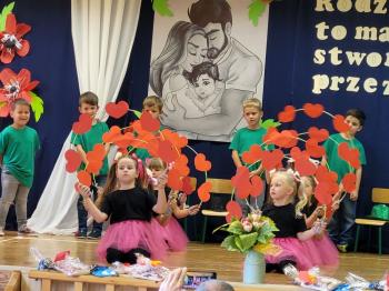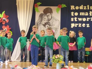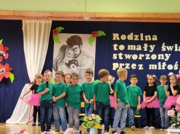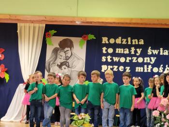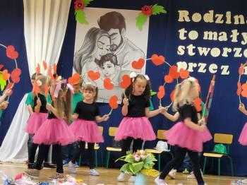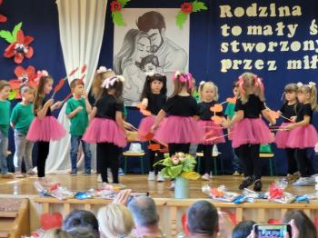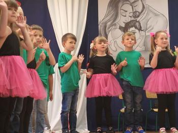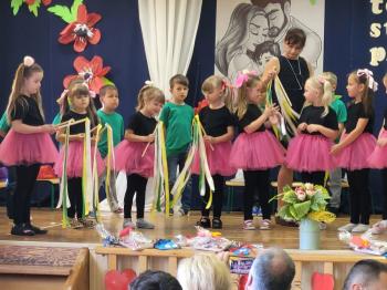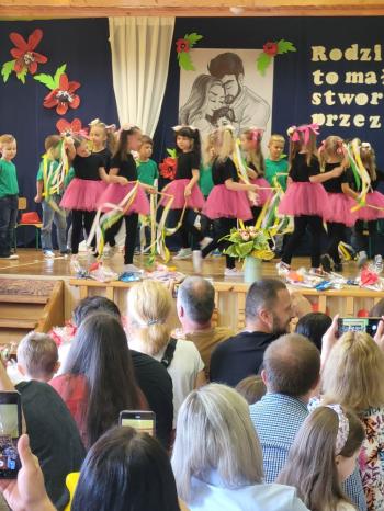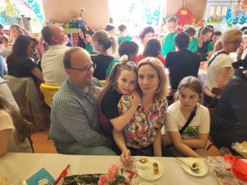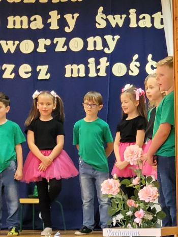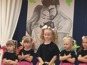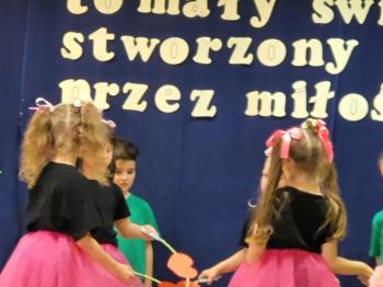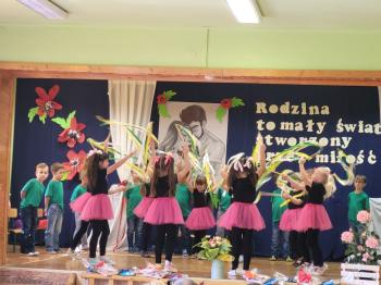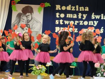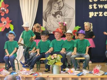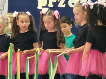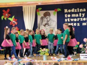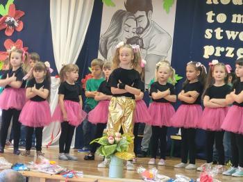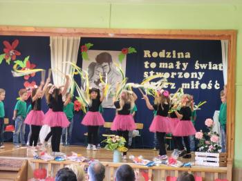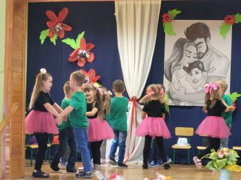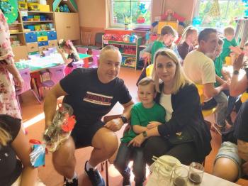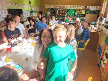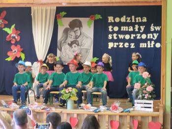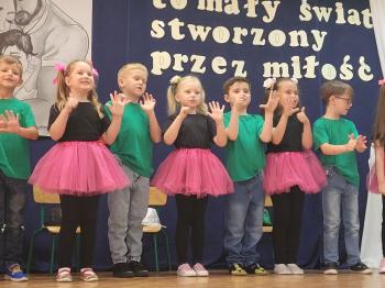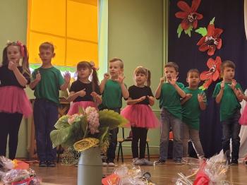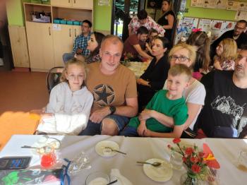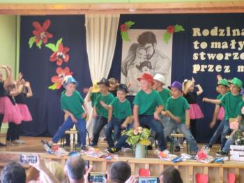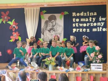W dniu 24 maja do naszego przedszkola przedszkolaki z oddziału Żabek zaprosili swoich rodziców na uroczystość ,,Święta Mamy i Taty”. Starszaki od samego rana były bardzo podekscytowane i nie mogły się doczekać swojego przedstawienia. Na początku uroczystości wszystkich rodziców i gości powitała pani dyrektor Krystyna Bezwińska zapraszają starszaków na występ. Dzieci w przepięknych strojach zaprezentowały wiersze i piosenki o mamie i tacie. Ponadto były także tańce z kolorowymi wstążkami, obłąkami w serduszka oraz hip-hop i taniec chłopców z krzesełkami. Rodzice swoje pociechy nagrodzili gromkimi brawami. Po odśpiewaniu 100 lat przedszkolaki wręczyły mamusi i tatusiowi upominki. Na zakończenie uroczystości zaprezentowały swoje umiejętności taneczne dzieci, które w tym roku uczestniczyły w zajęciach tańca towarzyskiego u pana Piotra Bednarczyka. To był dzień przepełniony dumą i miłością!!! |