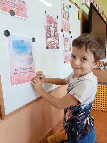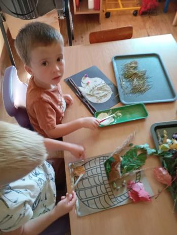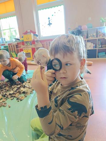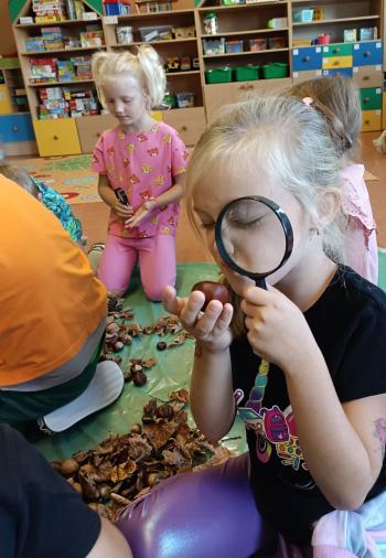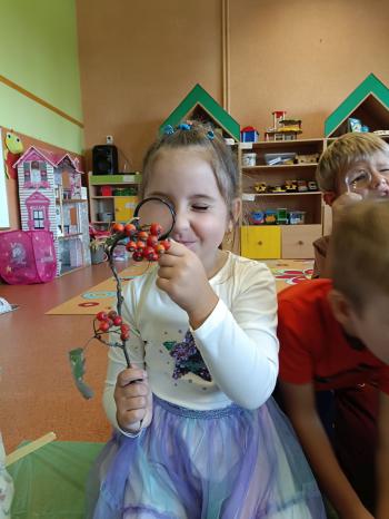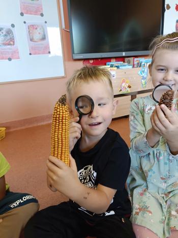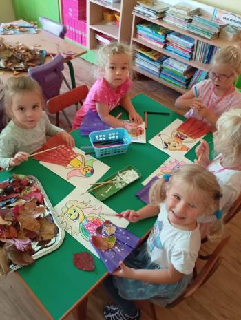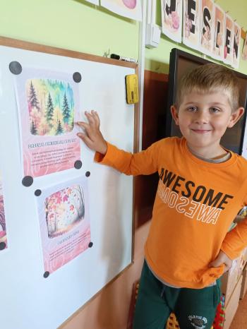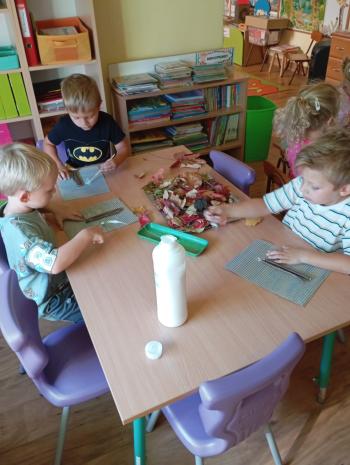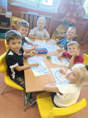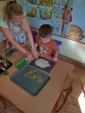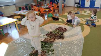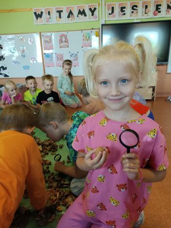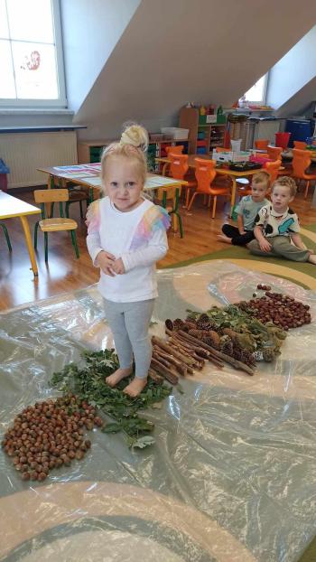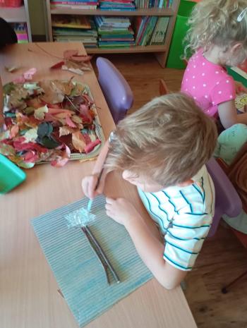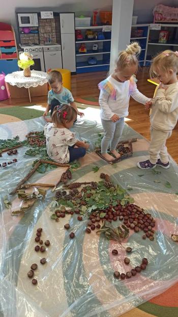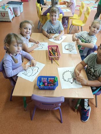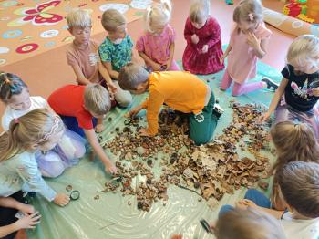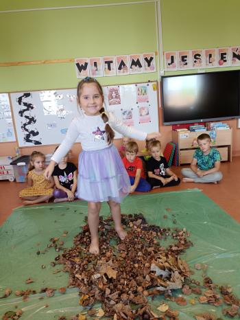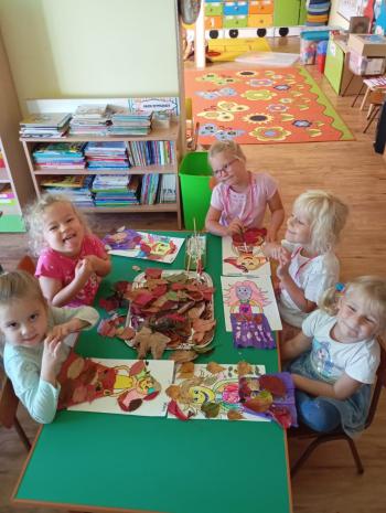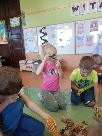 Nasze przedszkolaki 23 września witały nową porę roku. We wszystkich grupach dzieci poszerzyły swoją wiedzę przyrodniczą na temat zmian zachodzących jesienią. Najmłodsze ,,Słoneczka” segregowały dary jesieni oraz stworzyły piękne prace plastyczne z wykorzystaniem naturalnych materiałów (darów jesieni). Uczestniczyły we wspólnych zabawach integrujących grupę oraz tańczyły przy utworach związanych z tematyką jesienną. Przygotowany tor sensoryczny pozwolił maluszkom poznać i rozróżniać różne tekstury: miękką, twardą, szorstką i gładką. Dzięki wrażeniom zmysłowym, dzieci rozwijają umiejętności takie jak: zainteresowanie środowiskiem oraz kreatywność. „Kaczuszki” rozwijały swoją pomysłowość i sprawność manualną. Wykonywały prace plastyczne z użyciem naturalnych materiałów (liście), które same zebrały i przyniosły do przedszkola. Powstały piękne prace z jesiennymi drzewami. Kolorowymi liśćmi ozdabiały sukienkę i włosy Pani Jesieni, wyklejały igiełkami jeże. Najstarsze „Żabki” rozpoczęły zajęcia swobodnymi wypowiedzi na temat darów jesieni. Następnie brały udział w rozwiązywaniu zagadek sensorycznych, uruchamiając zmysły: smaku, słuchu i dotyku oraz zadaniach klasyfikacyjnych, segregując dary jesieni wg wskazanej kategorii. Miłym akcentem był masaż relaksacyjny. Na zakończenie dzieci wykonały pracę plastyczną z użyciem niektórych materiałów. |
